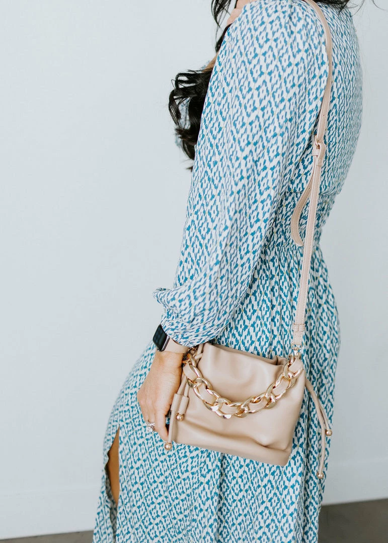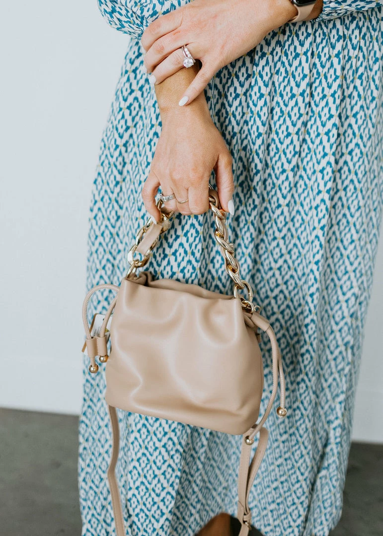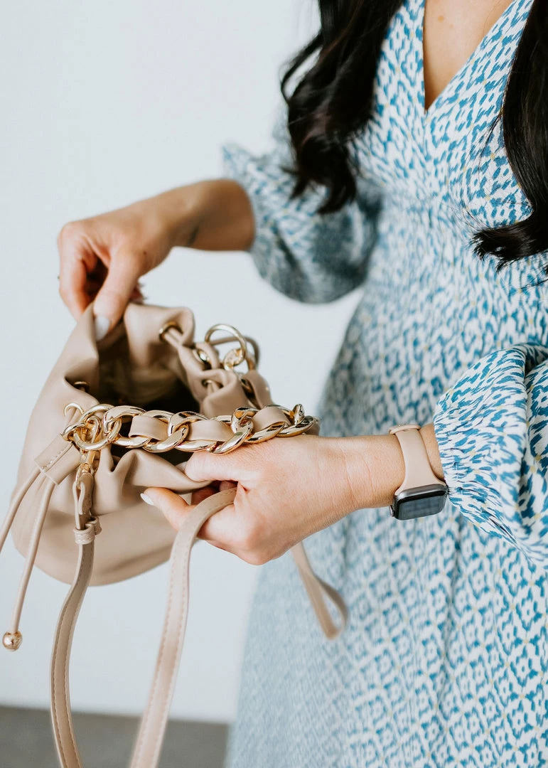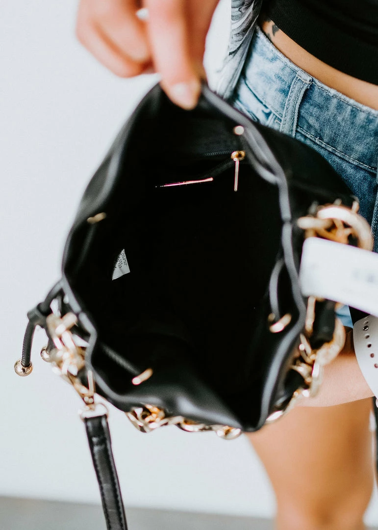 Keep it classy while traveling in the Safe Travels Bucket Bag! Unique chain link handbag with a second strap for a crossbody effect. Stay safe travelers.