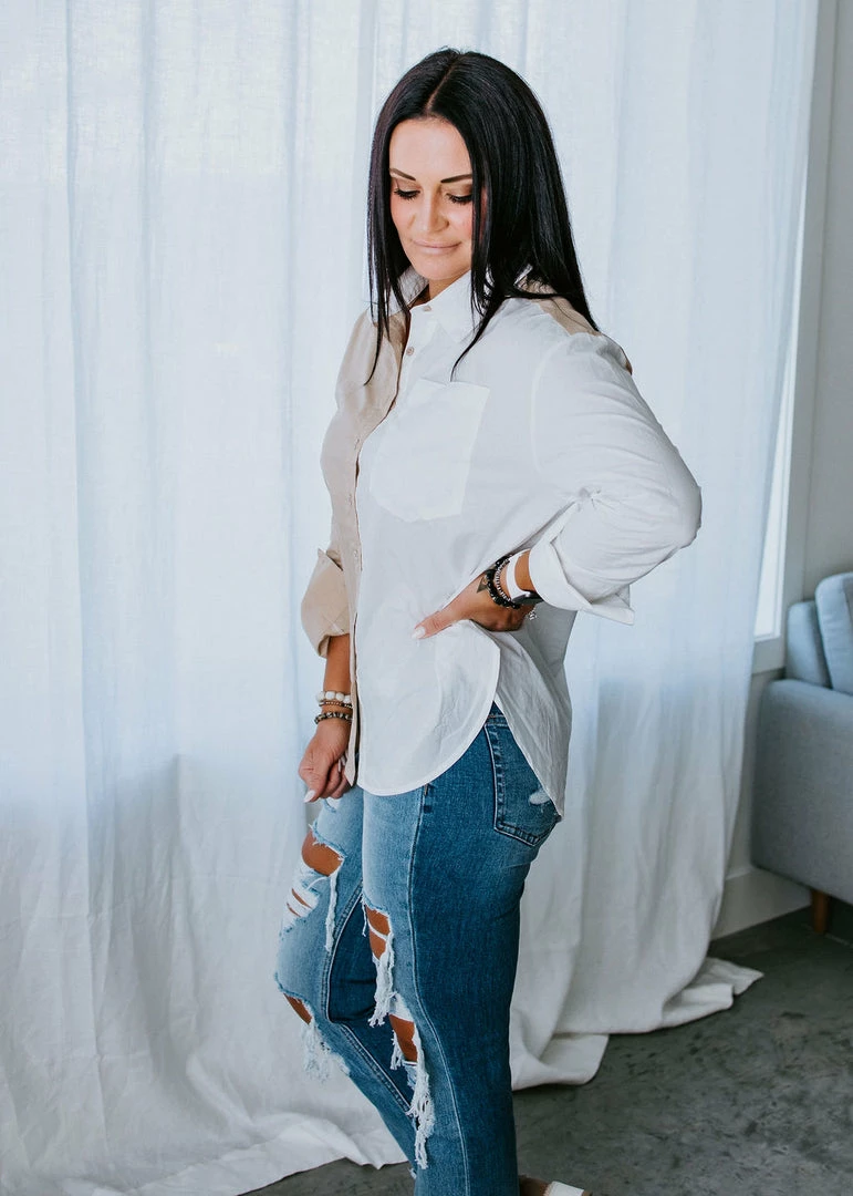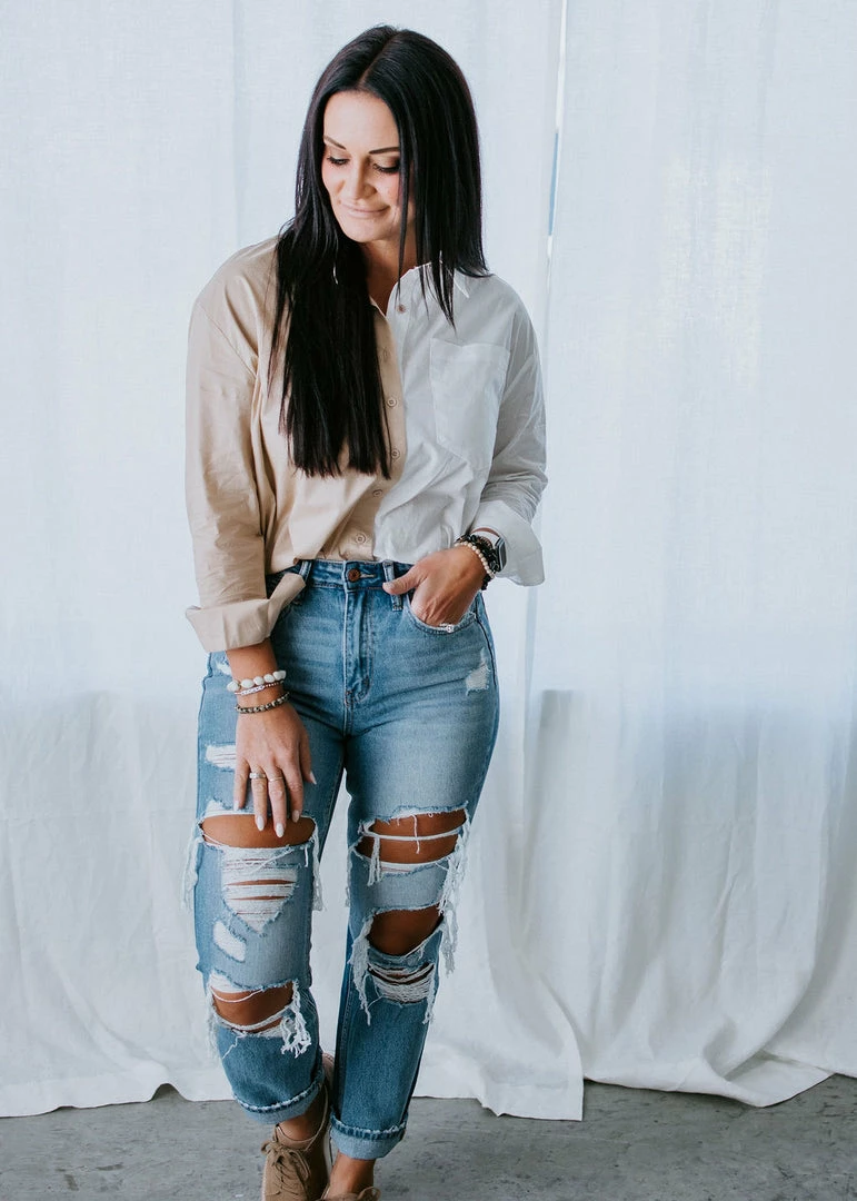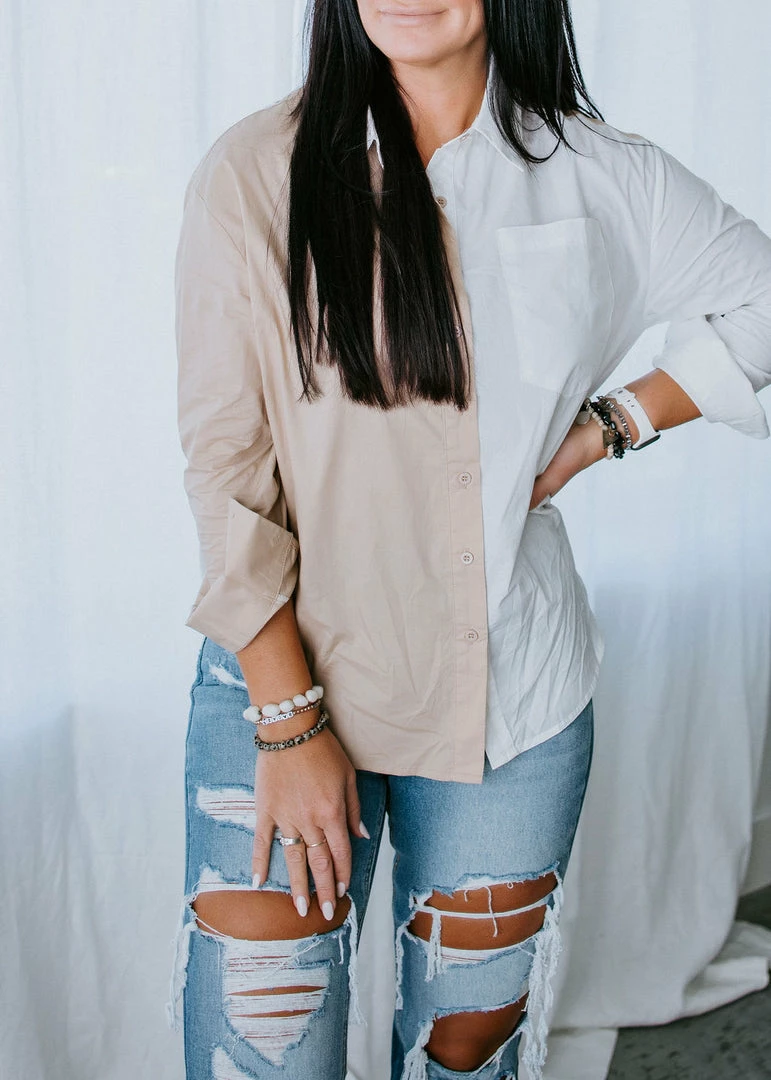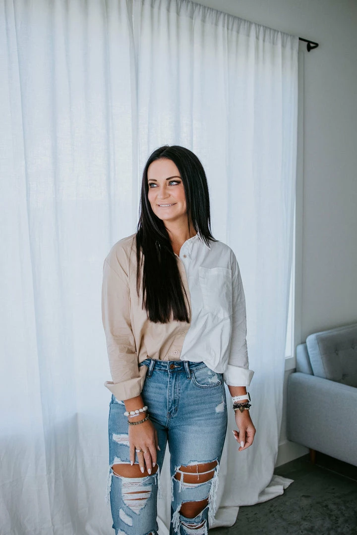 No one is going to forget your ‘fit when you show up wearing the Seeing Double Button Down Top. This lightweight, cotton top features a collared neckline, long sleeves, and a button-up front closure. Finished in a relaxed fit. For a stunning date night look, pair with a leather skirt or pants. Laurie is wearing a small.