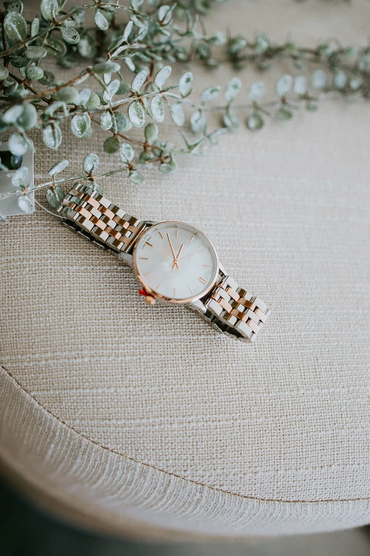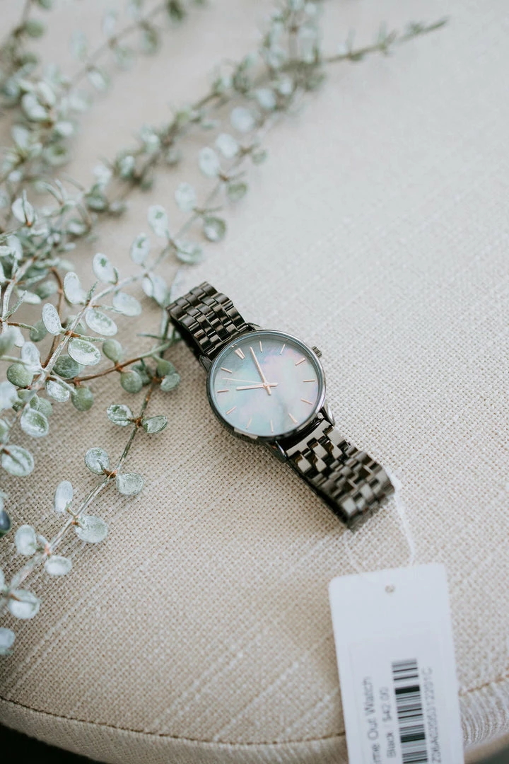 Time Out Watch flawlessly combines style and utility! A round watch face features a minimal time marker with a clasp closure.