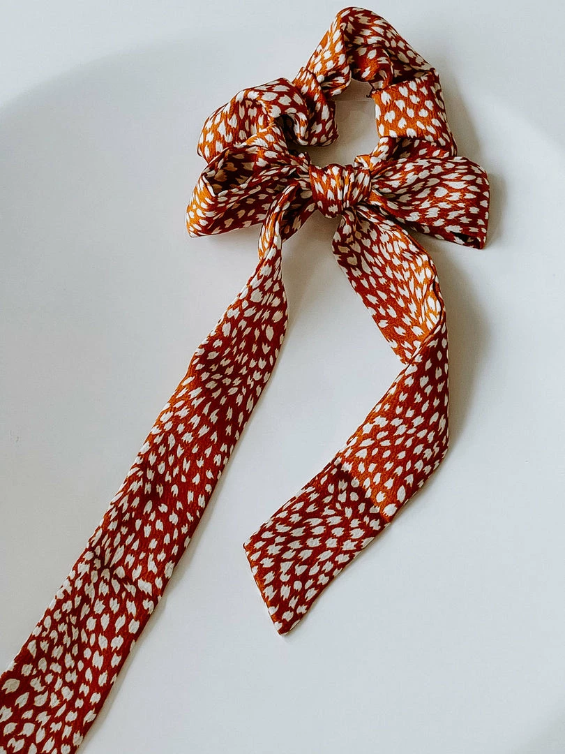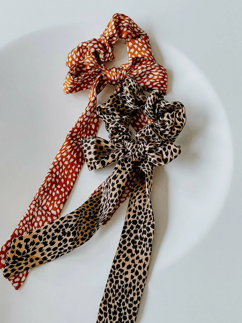 Spice up your usual ponytail with the new scarf scrunchies in! An adorable print, detachable scarf, with multipurpose use! 1. Hair scrunchie 2. Neckerchief 3. hair wraps!