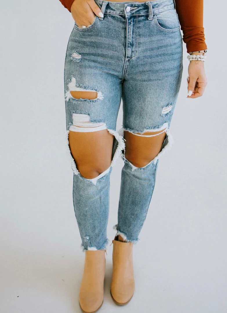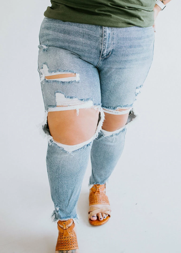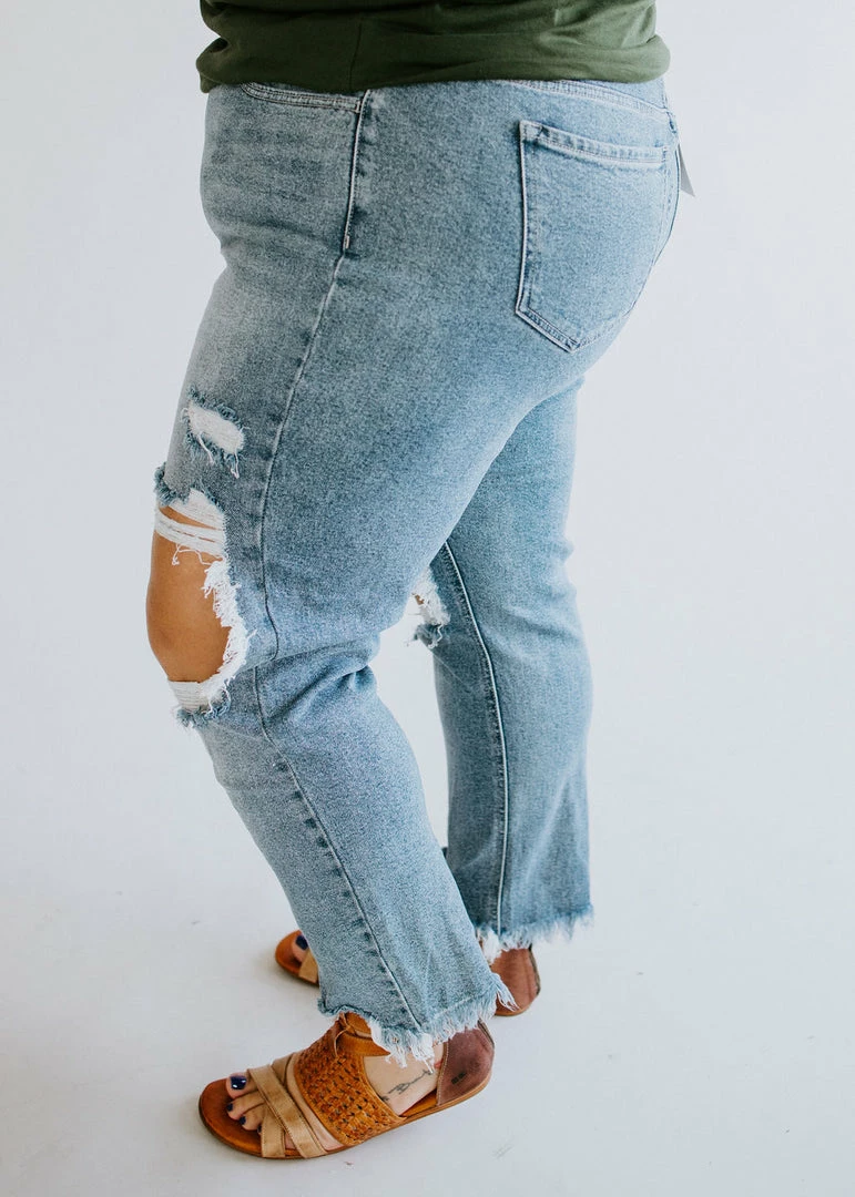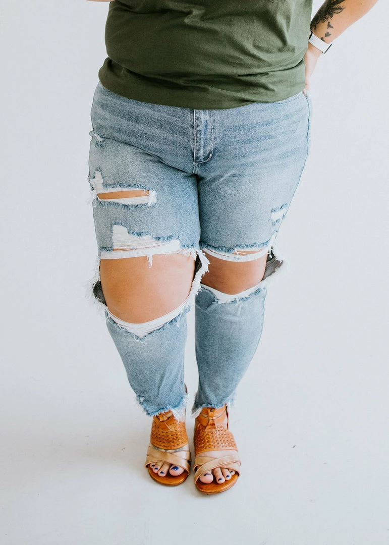 New trendy denim for our LB loves! Feature a destroyed knee, crop length, frayed hem, and the cutest washing for the perfect edgy denim option! Baylee wears a size 3. Laurie wears and prefers a size 3. Loghin is wearing a size 18.