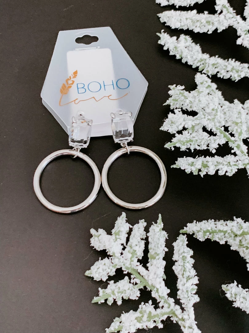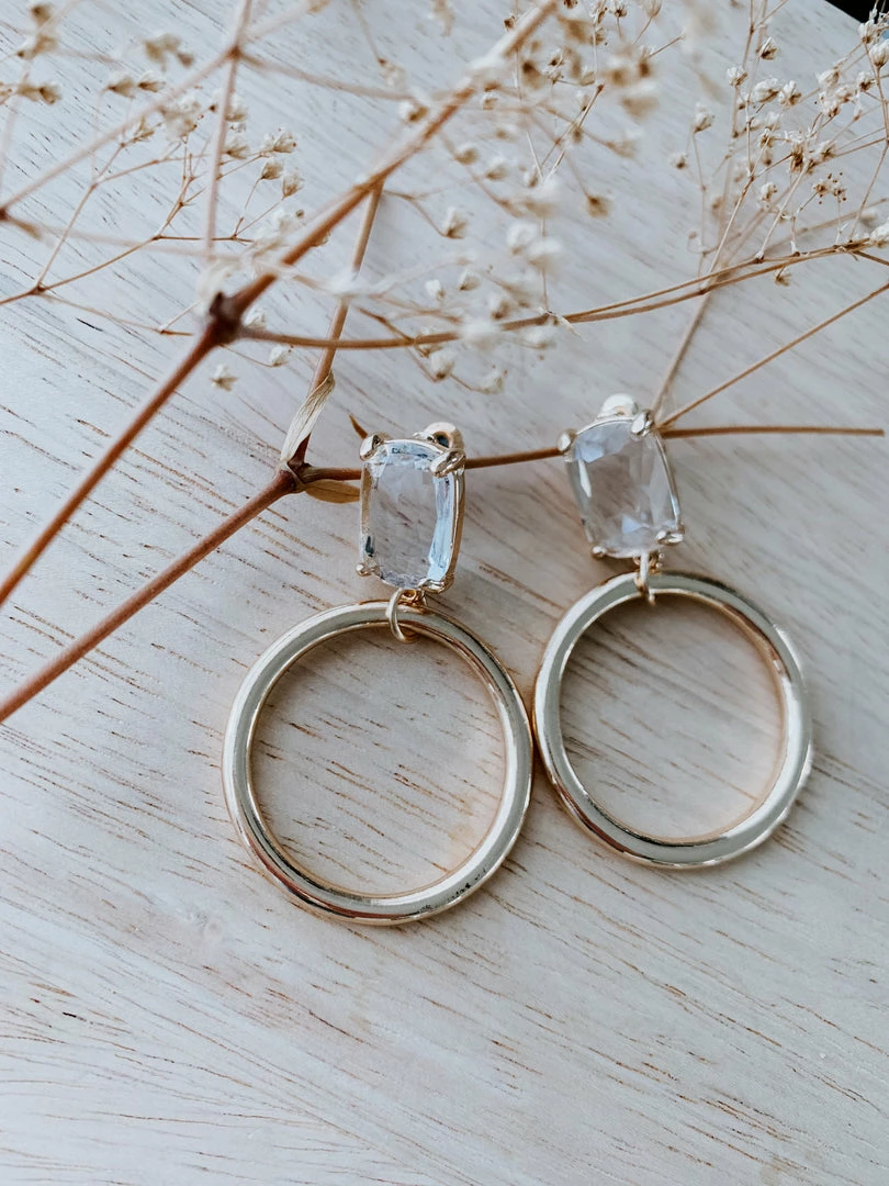 Let your true self shine through while wearing these Shining Allure Rhinestone Earrings. Features a large upper rhinestone with a connected hoop.