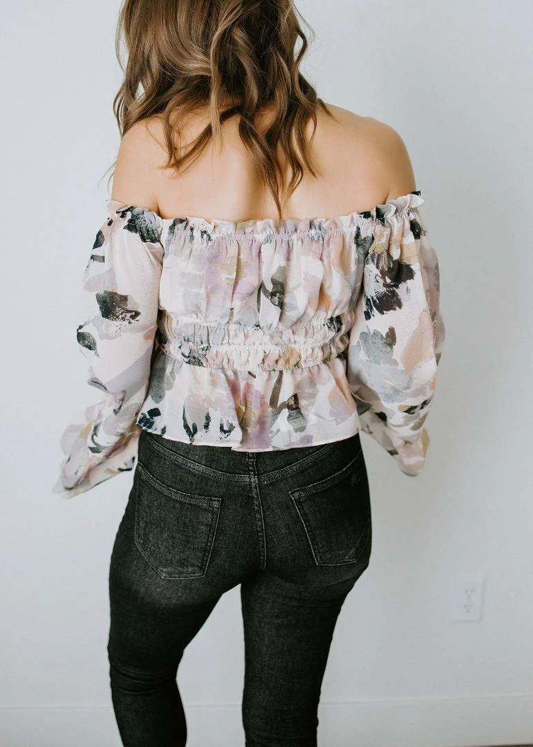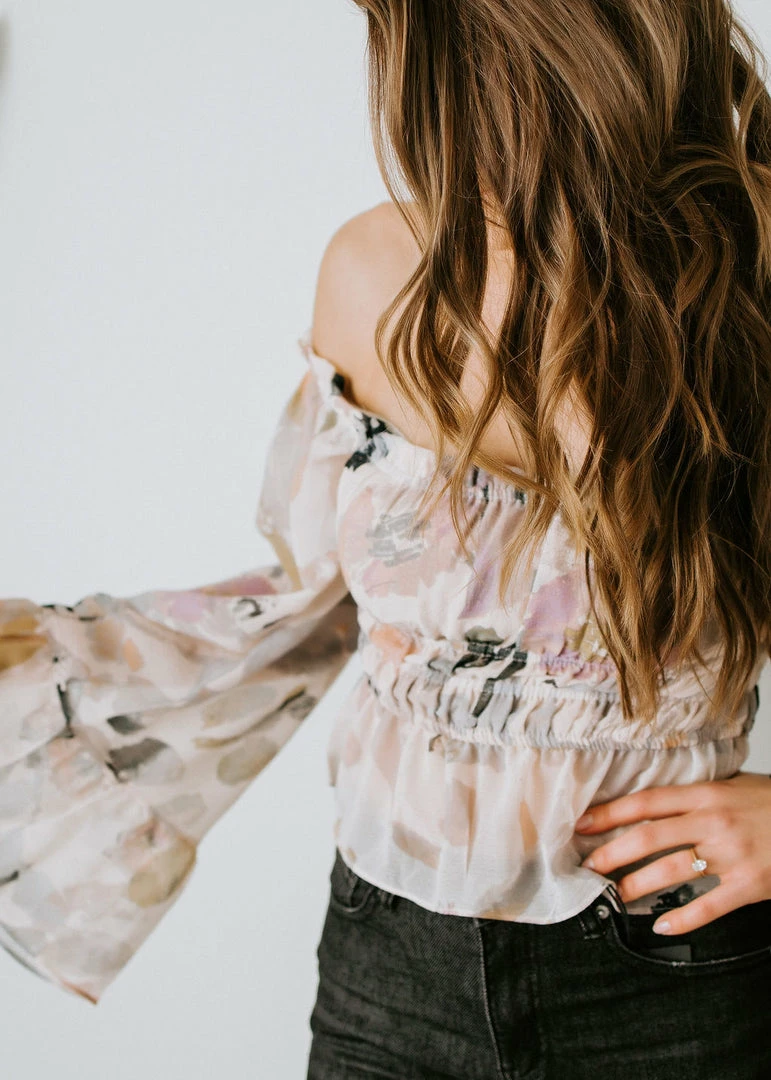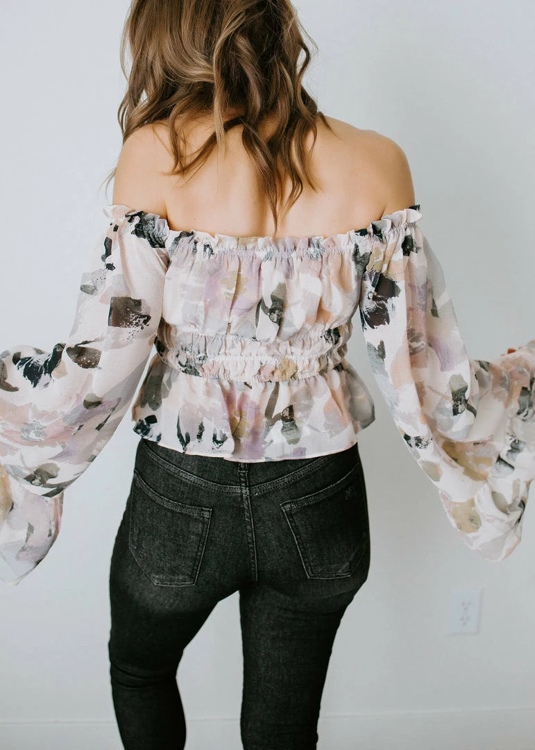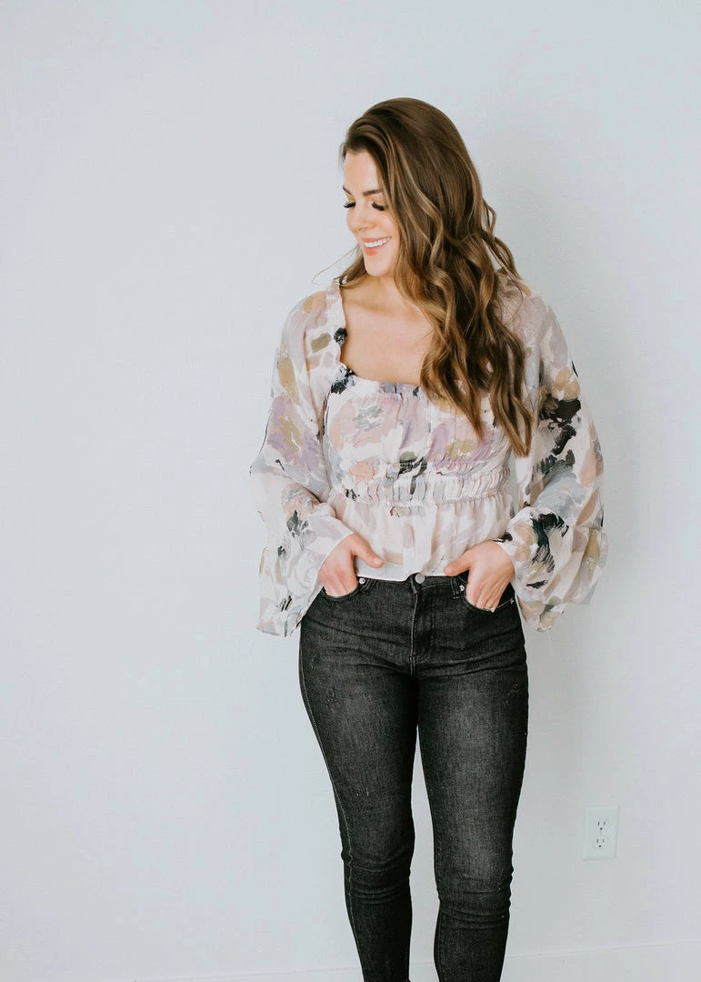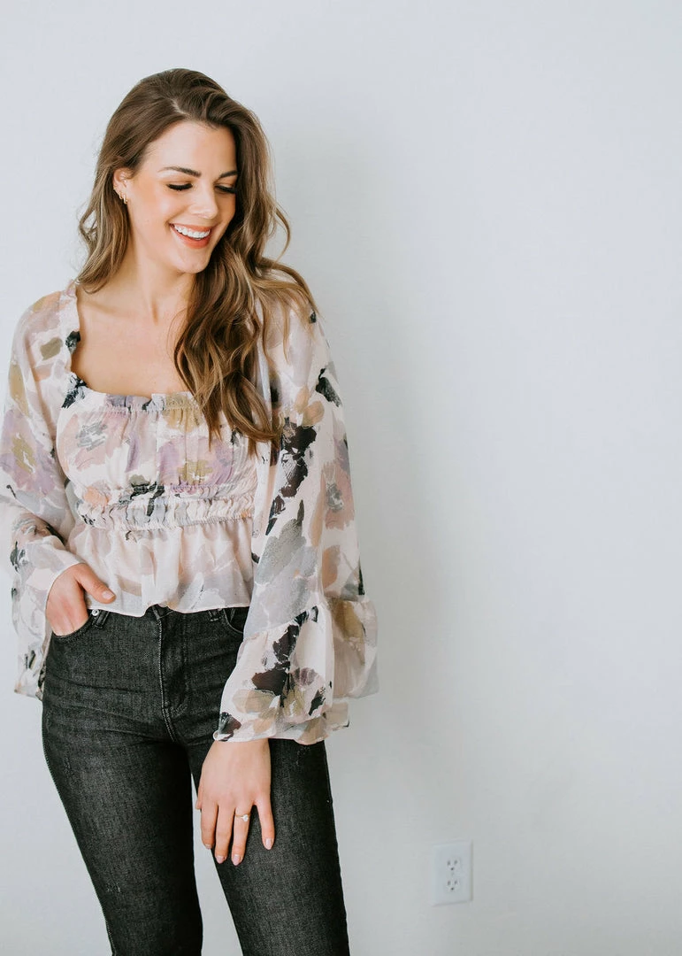 You’ll never want to be without this Top Trend Peplum Top from here on out! This gorgeous blouse features a smocked waist design, and peplum detail, with slight ruffles on the neckline and throughout the top, an elasticized cuff, and a gorgeous watercolor printed pattern. A square neckline that can be shaped to your liking. Never be without this Top Trend Top! Kara is wearing a small.