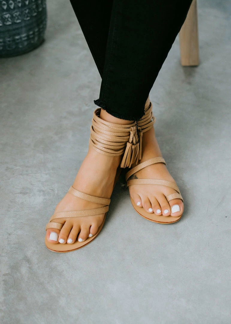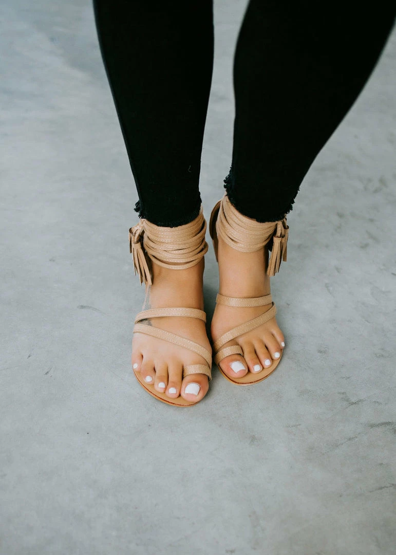 Get ready for festival season with the Free Style Sandal! They will match any and all outfits you’ll wear! Features toe straps that wrap around the foot and straps with tassels around the ankles. Back heel zipper closure.