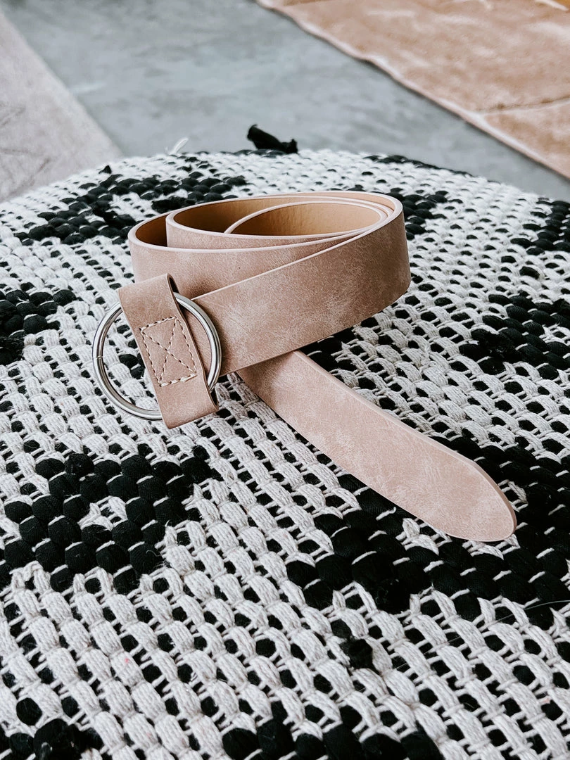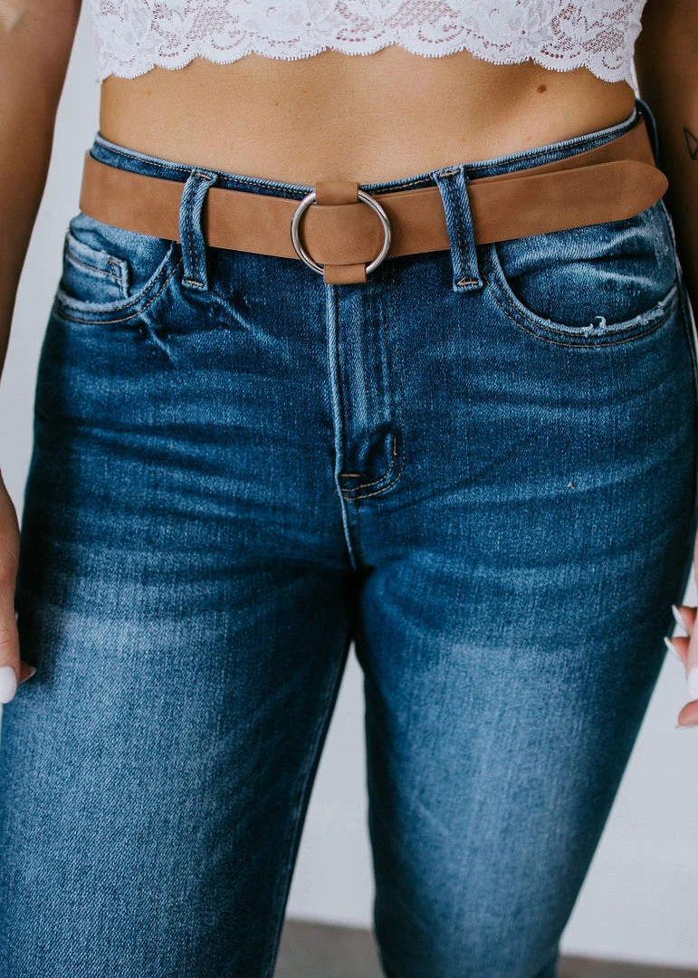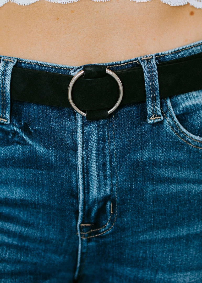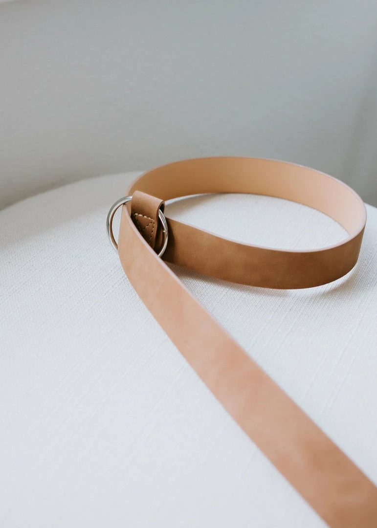 Tie your looks together with the sleek design of this vegan leather belt. Features an eye-catching o-ring accent and an adjustable fit. Pair with your favorite jeans for a polished look. One size fits most.