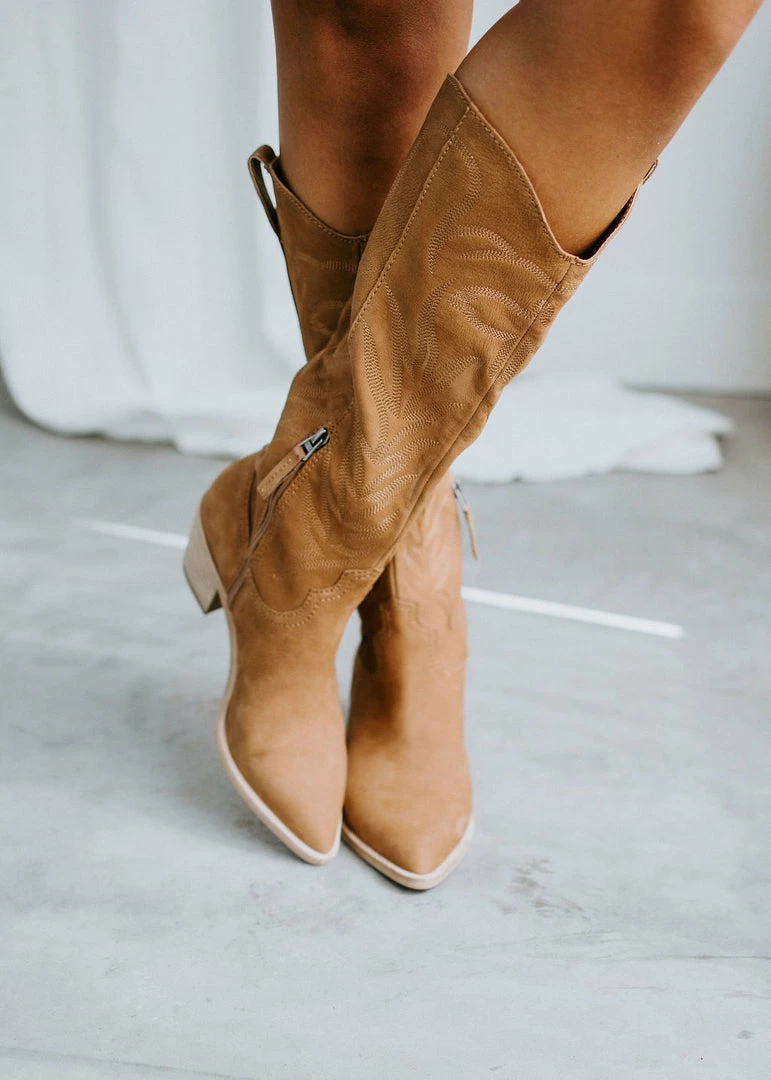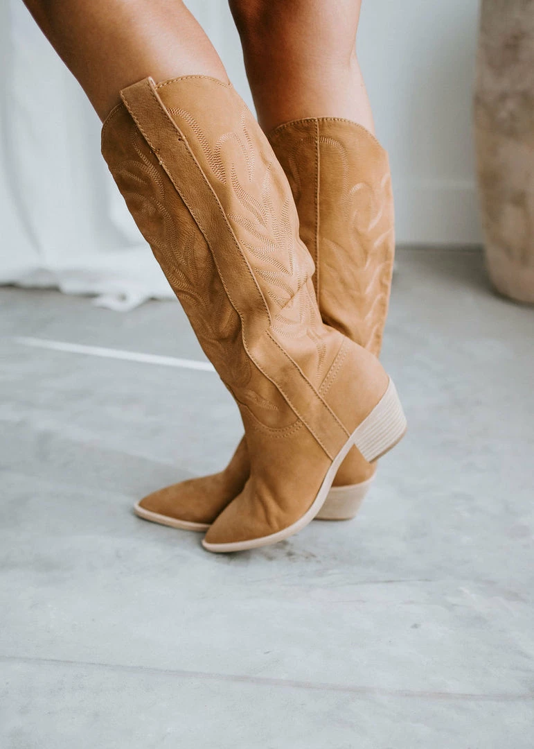 Western-inspired, these chic leather cowboy boots look like they were plucked right off the runway. Don’t be afraid to make a statement!
