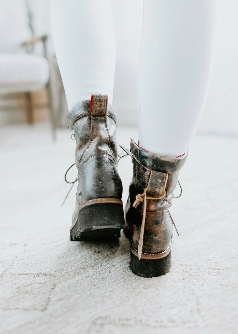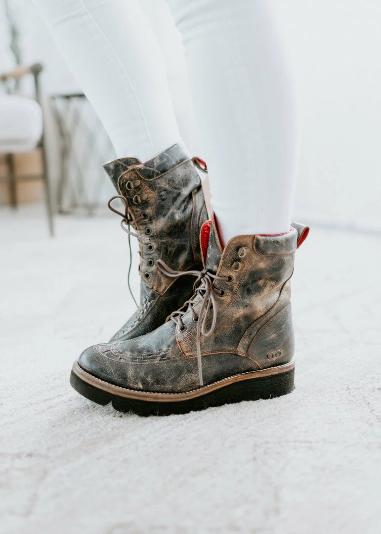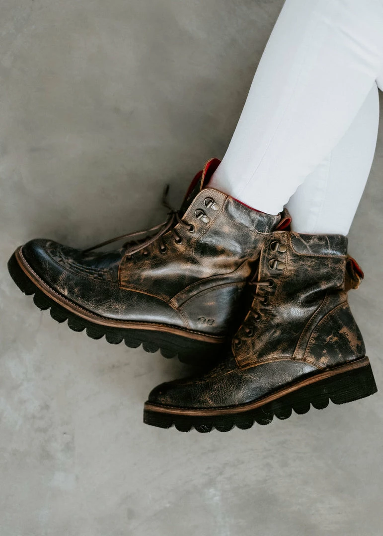 This worn-in leather style features a lightweight scalloped heel, cushioned footbed, with a high-top shaft.