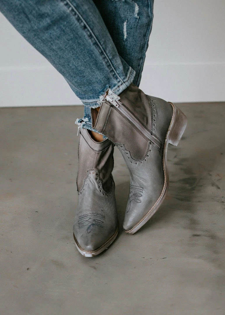 So new, so now! Get the trendiest look in the ROAN Ywen Booties. Mixed material, short western leather, and canvas boots. Special features include a stitched pattern in gradient tonal thread, stud detailing, and modest heel height. Bring the attitude and confidence to light in the Ywen.