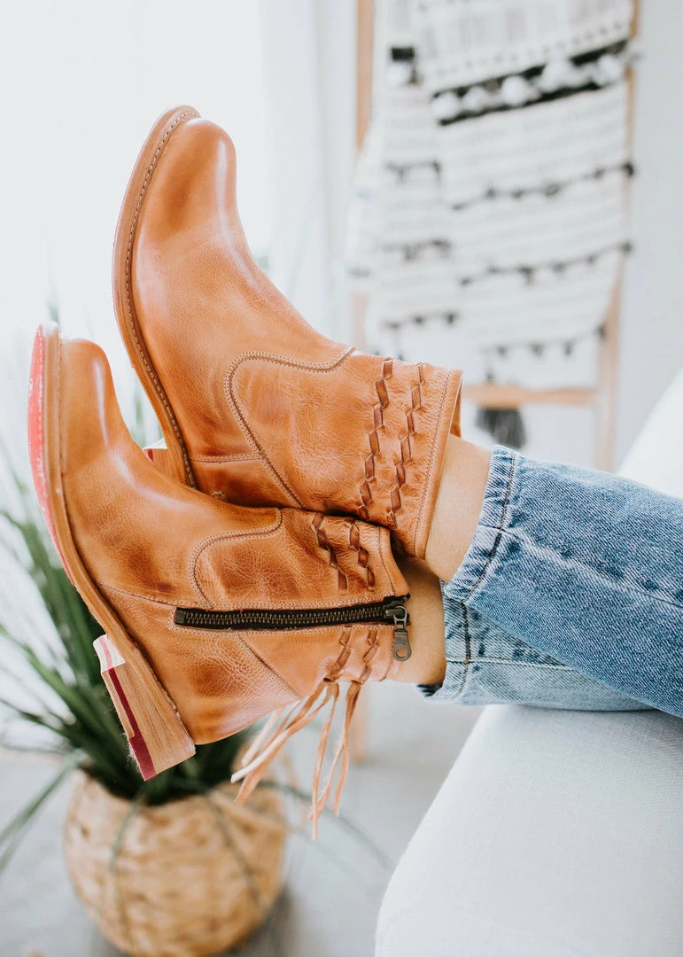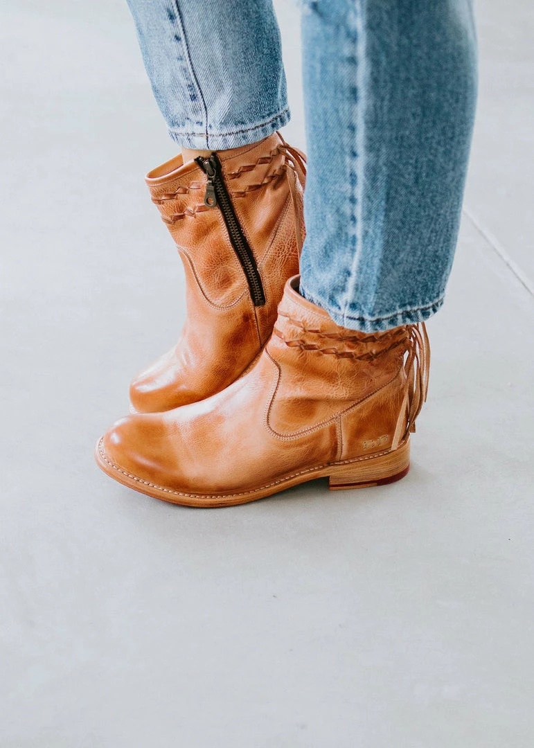 Bed Stu joins in on the Western-inspo fun with the Craven Booties crafted from genuine leather. Features a side zip closure with an added tassel detail. We recommend your typical size.