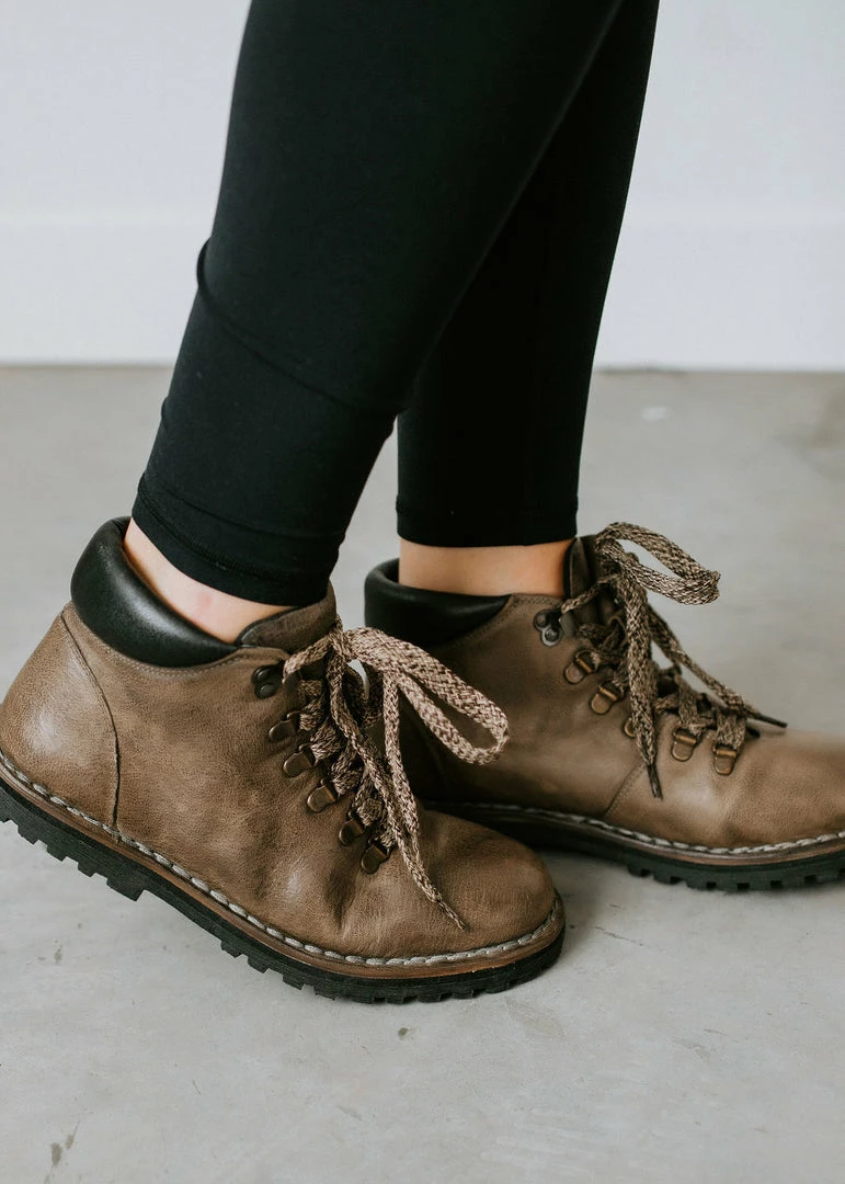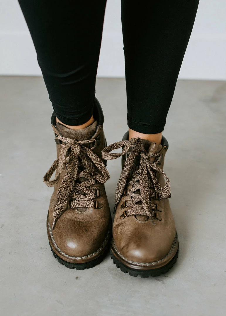 The Fatima Hiker Boot is an all-leather hiking-inspired ankle boot. Features D-ring lace-up, padded collar, contrast laces, and a treaded lug outsole. Pair them with bootcut denim and a band tee for a classic ’90s look.