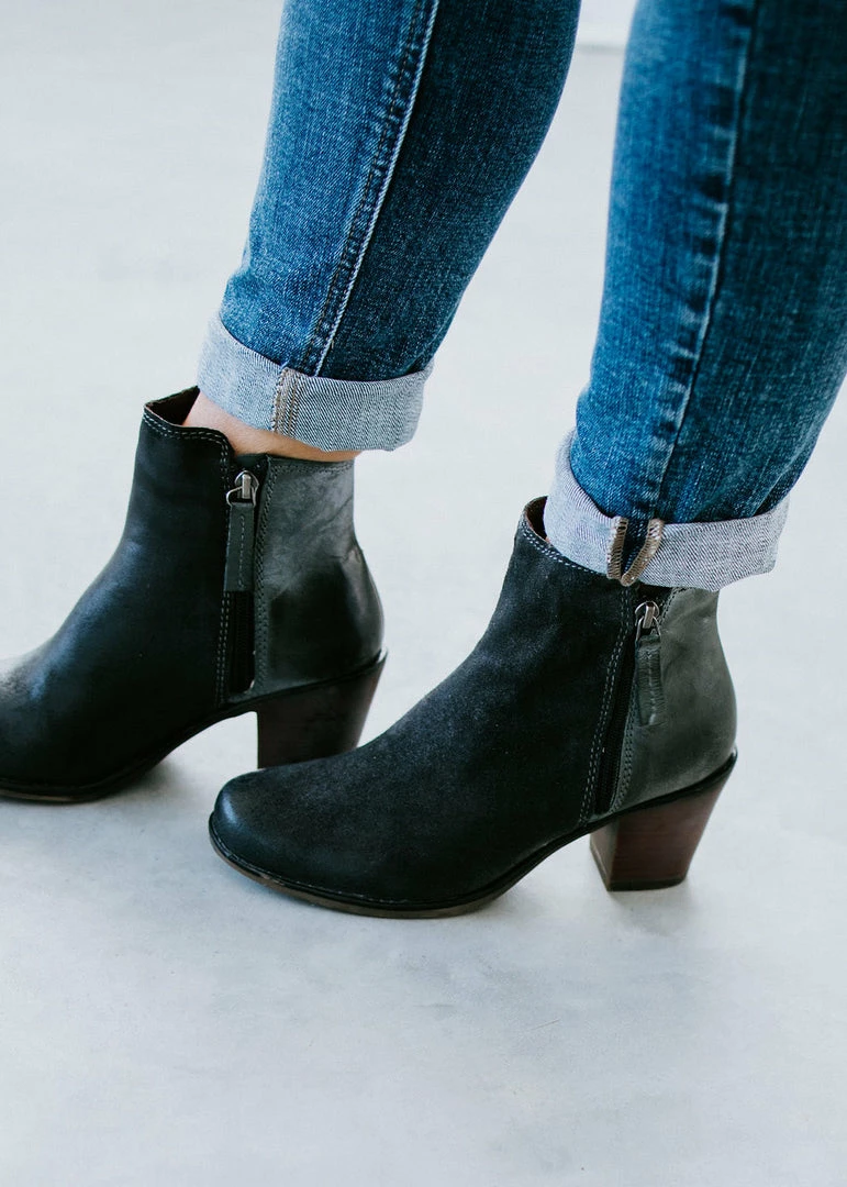 Command attention in LINA. Stand tall in this mixed suede and smooth leather heeled boot. Hand-finished leather with side zipper and slim shaft. Exude confidence in this sleek and stylish pair. Fit TTS.