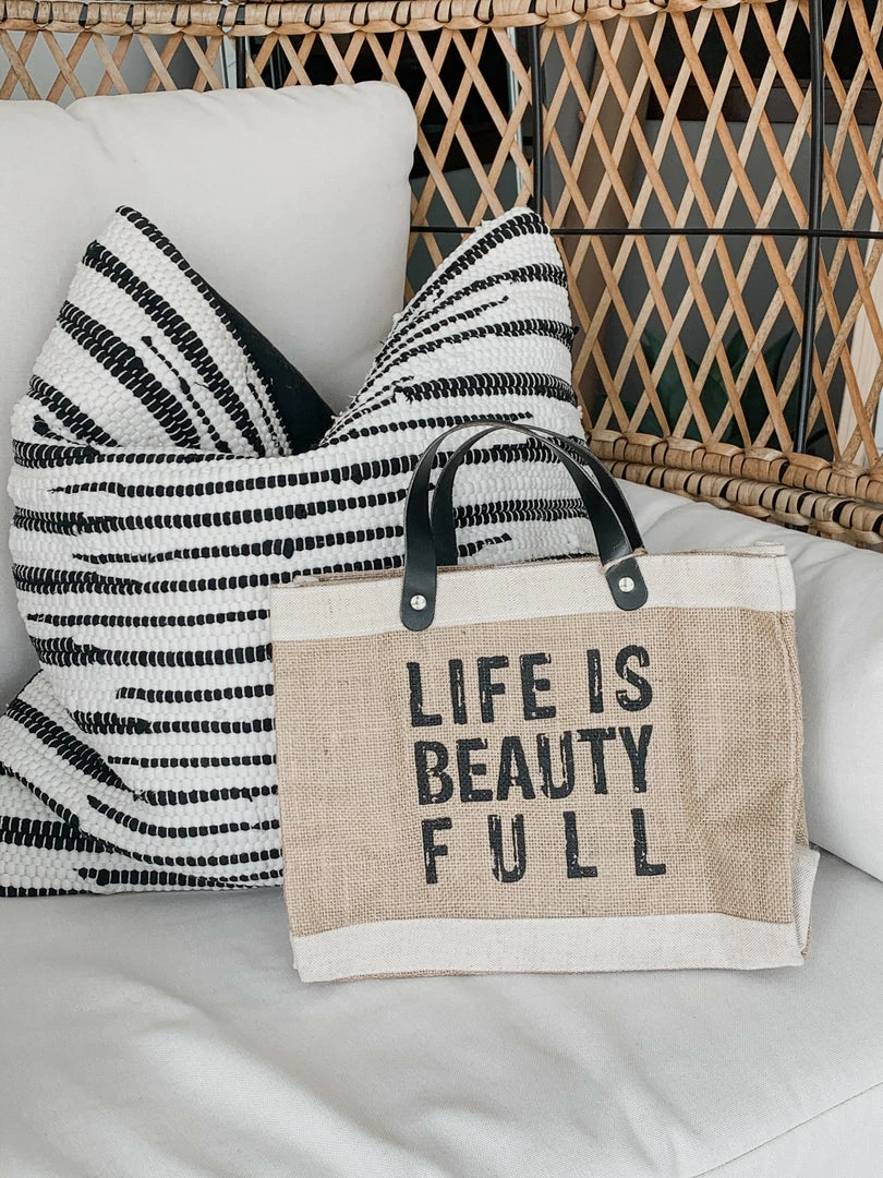 Always keep that daily reminder in your hands with this canvas tote with the message “Life is Beauty Full.”