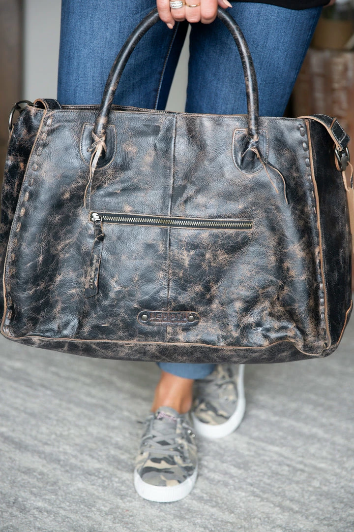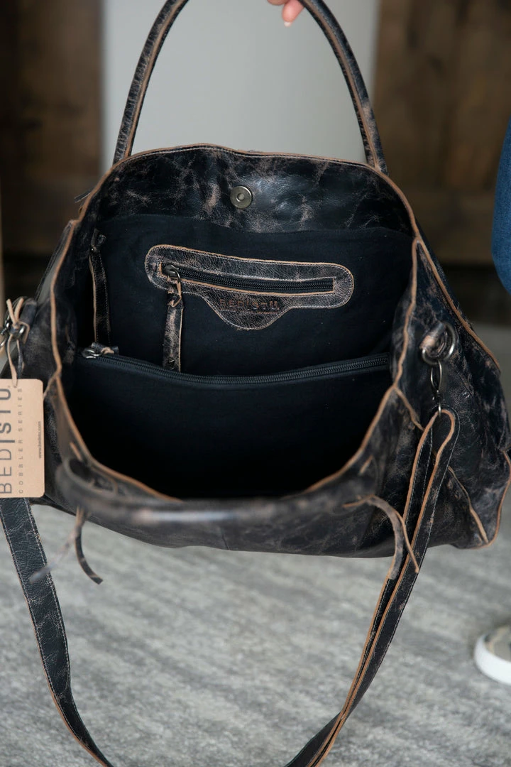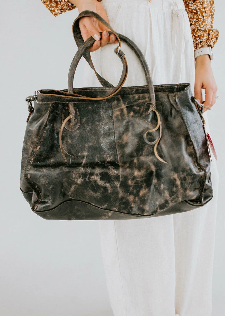 In this case, bigger is better. ROCKAWAY in black lux is big on looks, even better in function. Two strong handles support this voluptuous bag, detailed with crisscross tie details and a crackle effect finish. An optional shoulder strap can make this into a cross body as well, so carry confidently with ROCKAWAY.