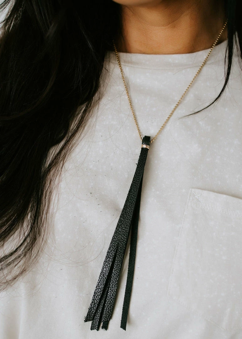 Too cute! This is every girls favorite! A long leather tassel in the color of your choice. Definitely pair Shakira with one of our chokers or short necklaces to complete your look!