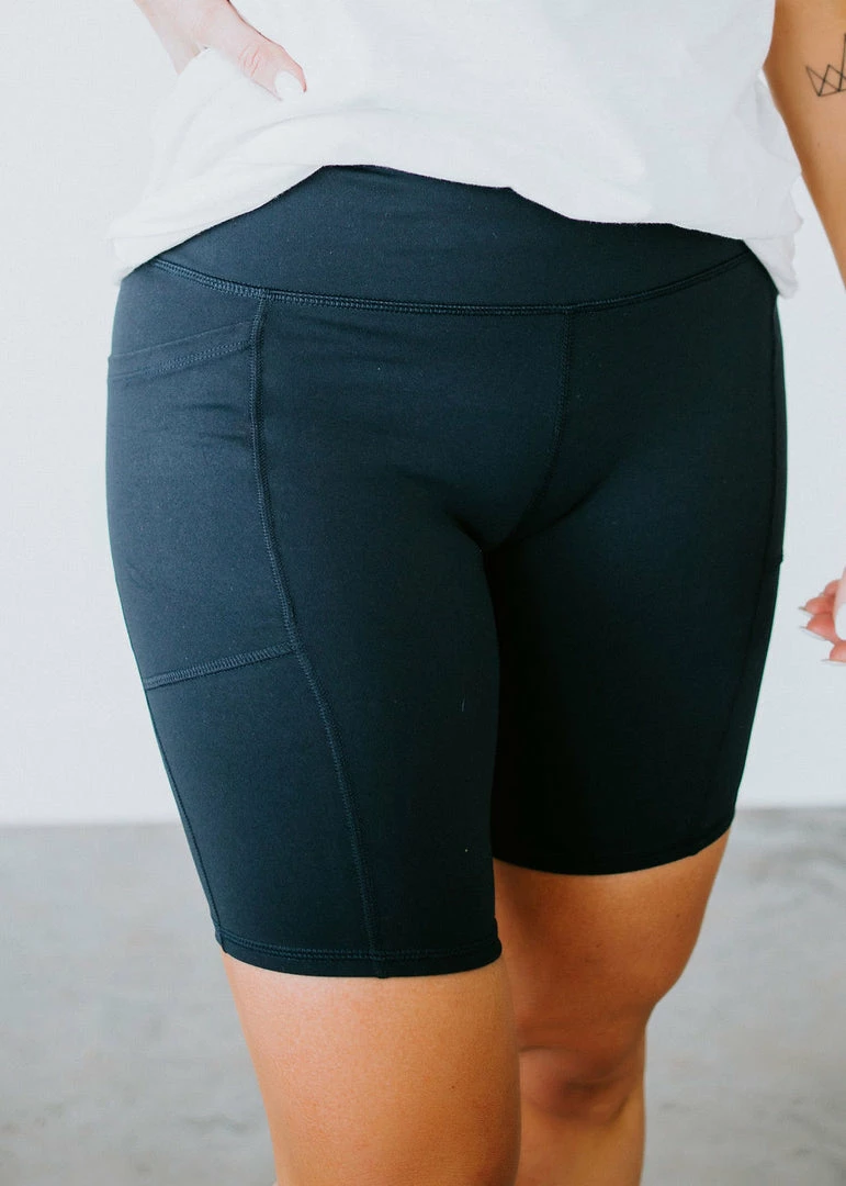 Go from spin class to sushi in these black biker shorts! These ultra-slimming shorts flatten your tummy with a wide waistband and create a contoured fit throughout complete with deep side pockets. These shorts will keep you looking fit in all the right places. Whether you’re working out or hanging out, you’ll look great! Laurie is wearing a small, Kaylor is wearing a medium and Loghin is wearing a 1XL.