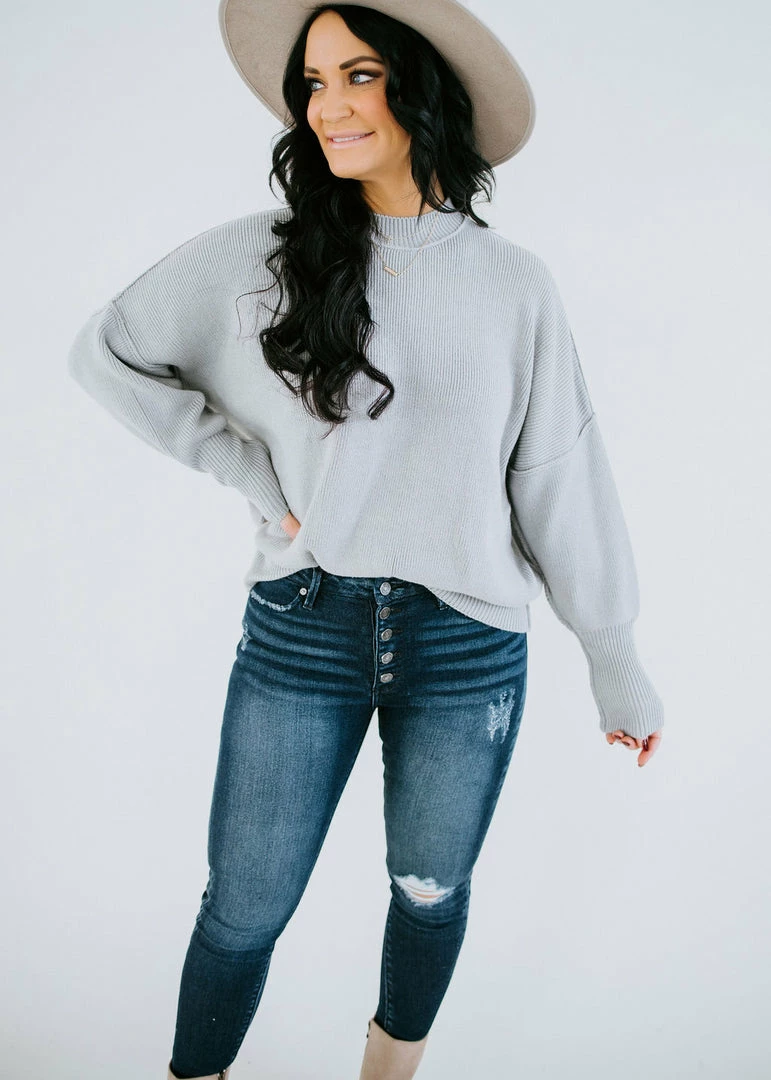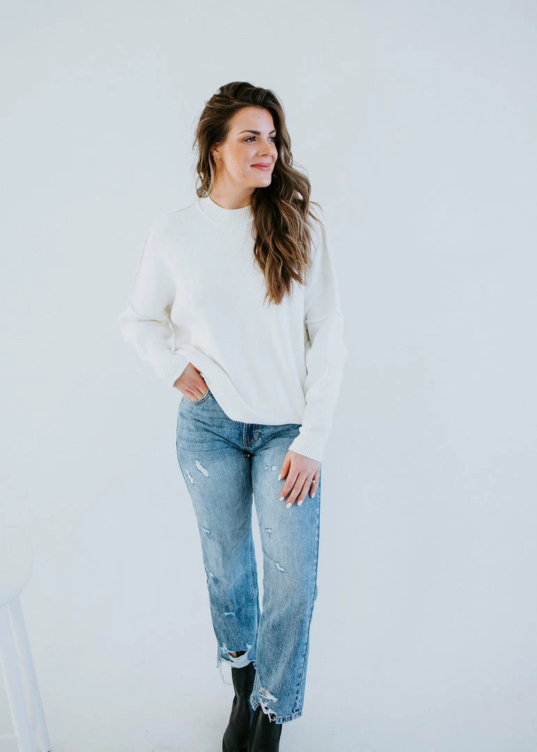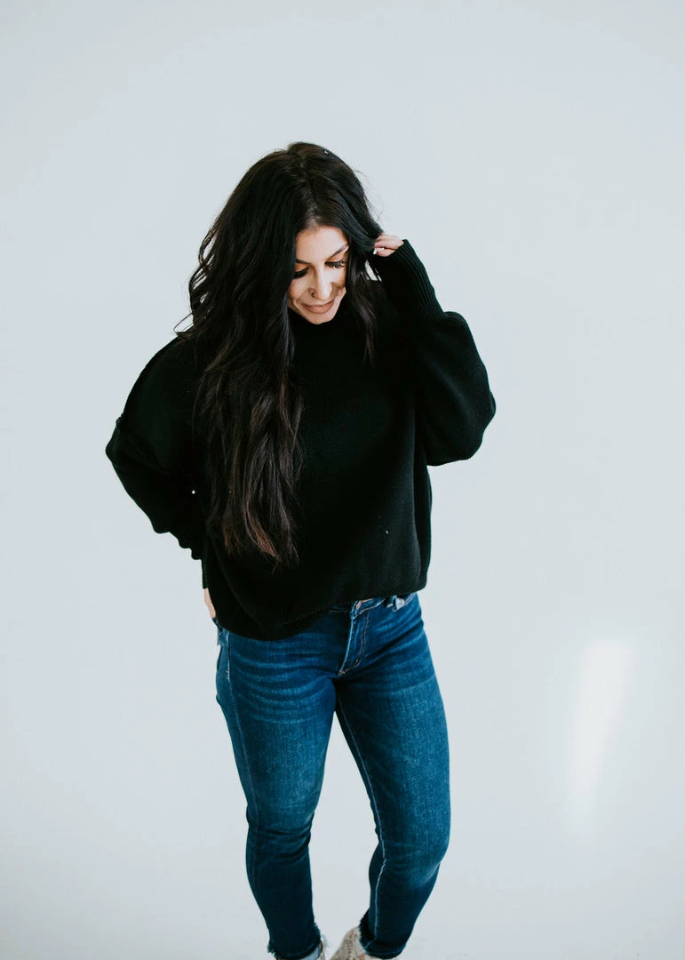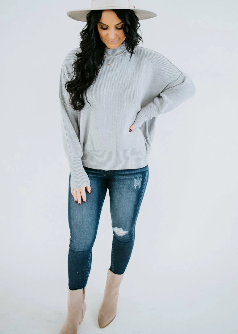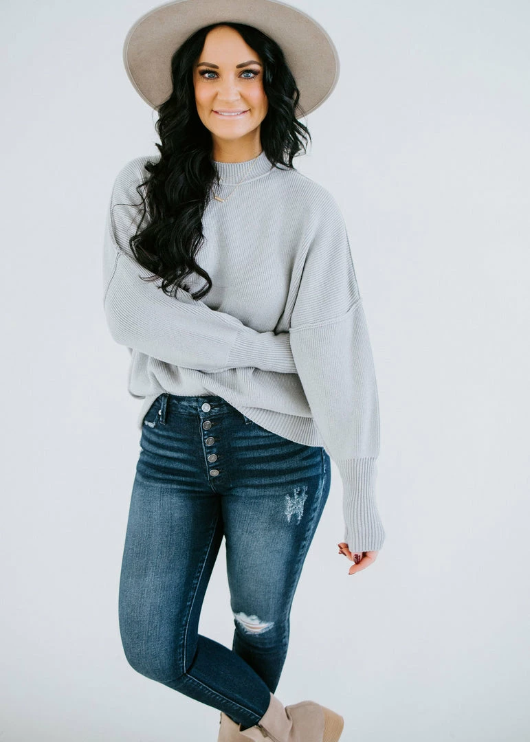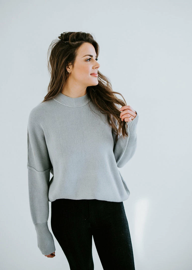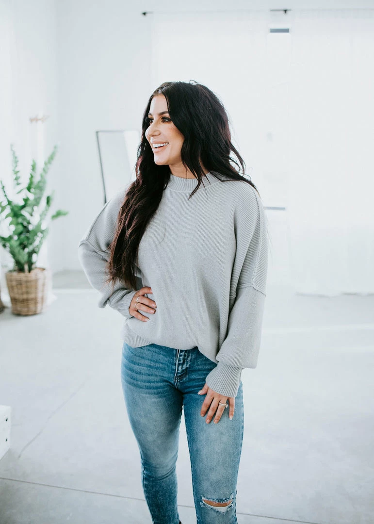 Every closet needs a versatile throw-on-and-go sweater! This Lauriebelles exclusive is the perfect get-cozy style that has been designed by Chelsea DeBoer and Laurie to be your next wardrobe hero. Snuggly ribbed knit shapes the relaxed silhouette that serves up effortless style with luxe comfort. Beautifully constructed with a mock neck, seaming details throughout, and a wide-cut bodice that gently tapers at the waist. Long sleeves are styled with dropped shoulders and end with long fitted cuffs. Pair it with your favorite jeans, ankle booties, and a wide-brimmed hat. Or wear it over a maxi-length dress and boots for a flawless look.