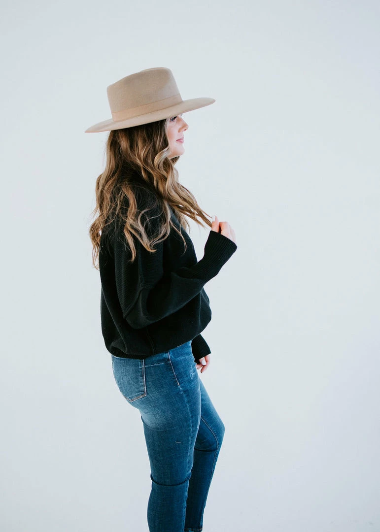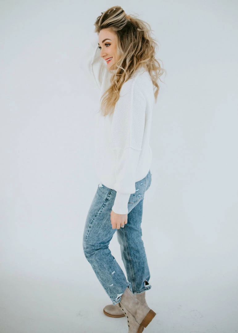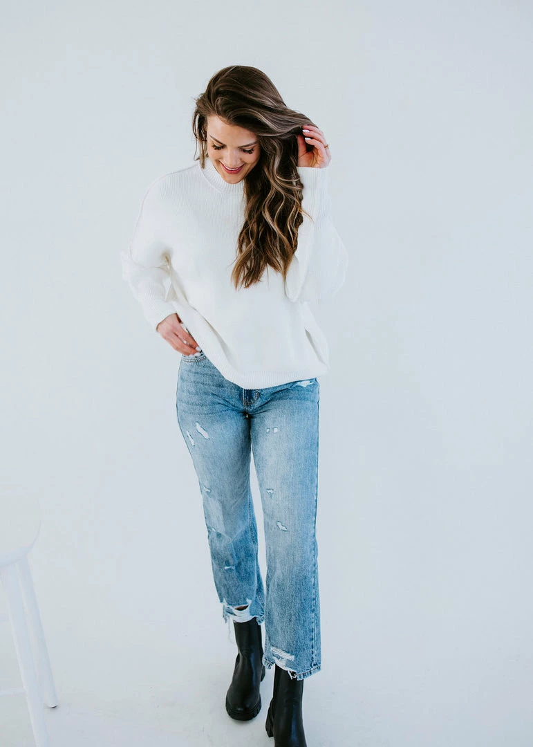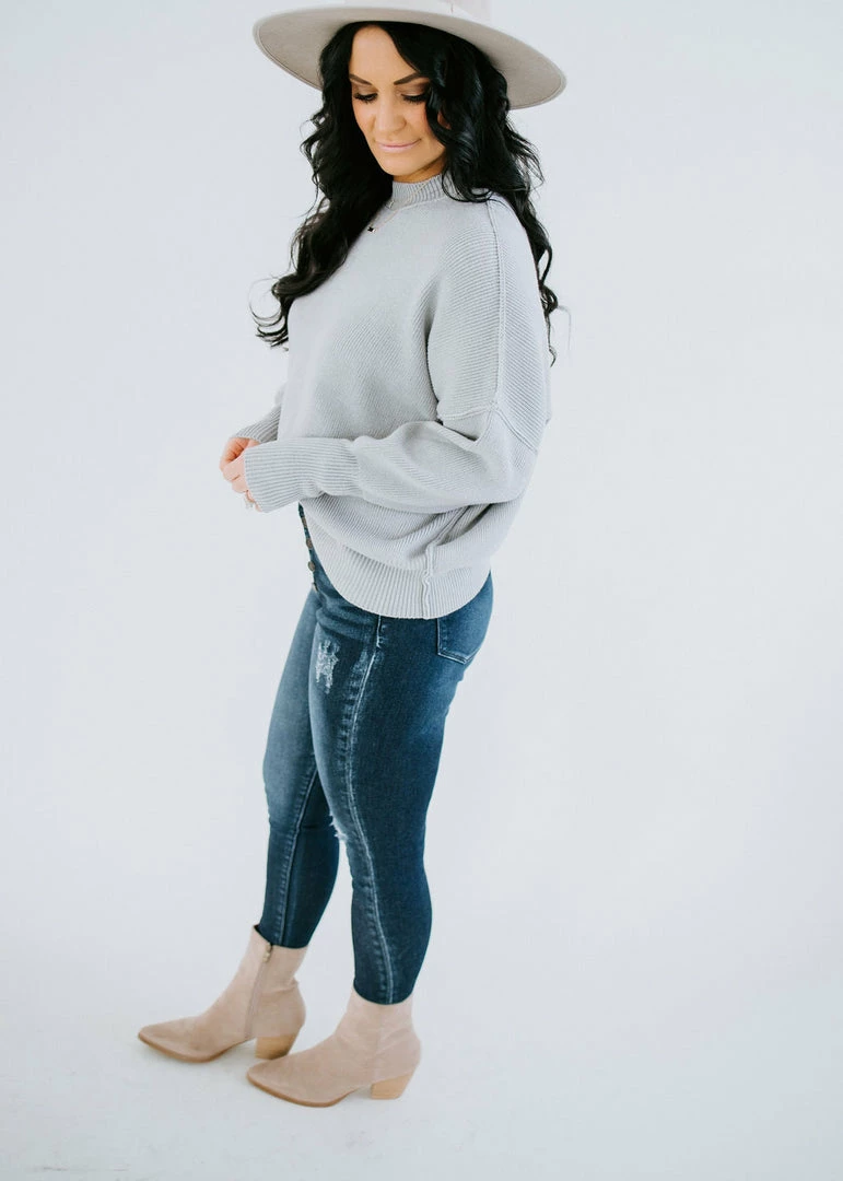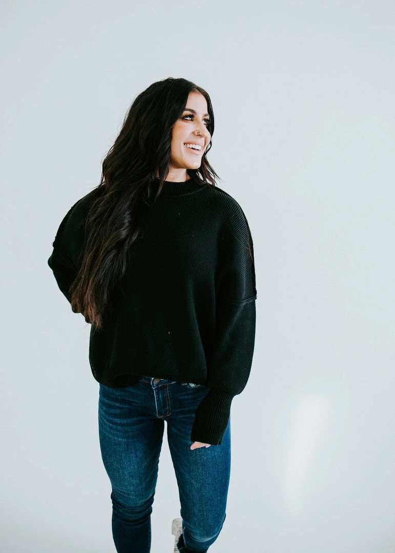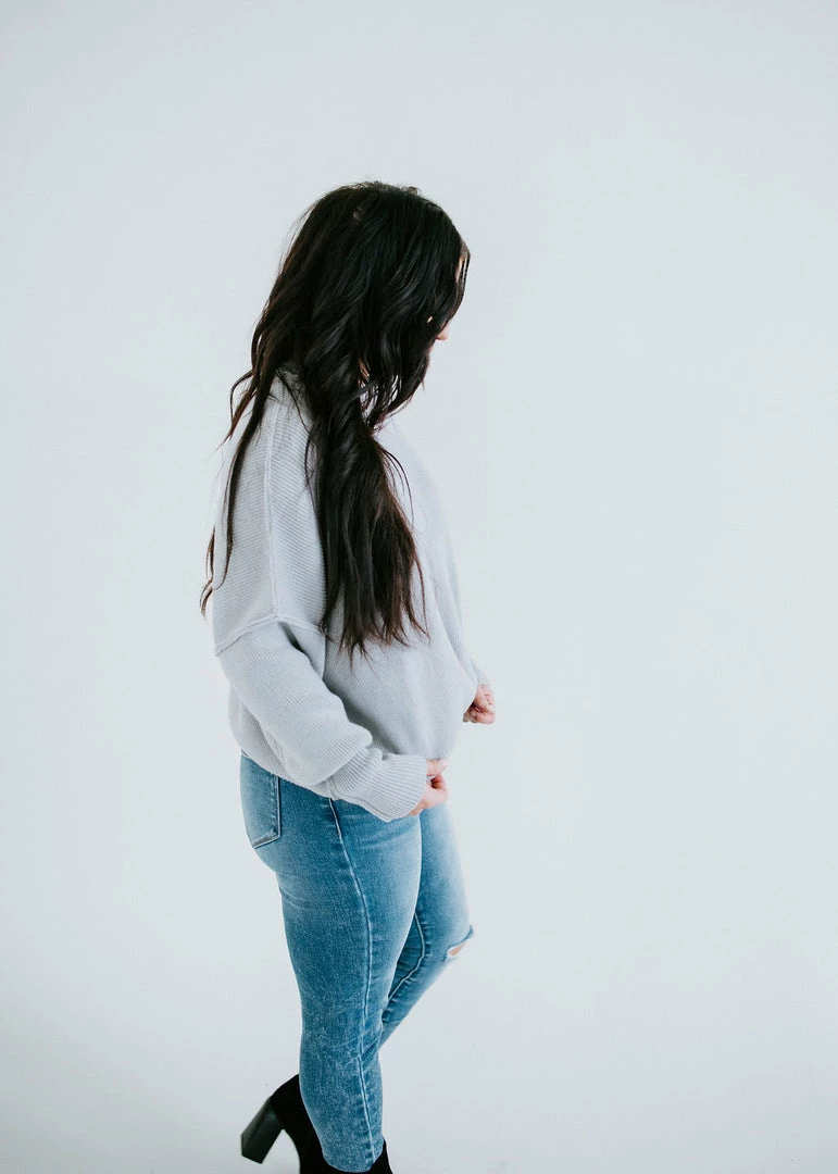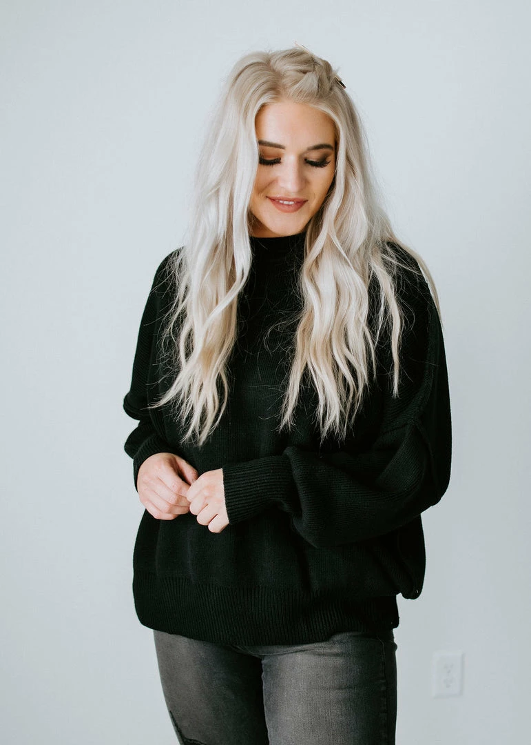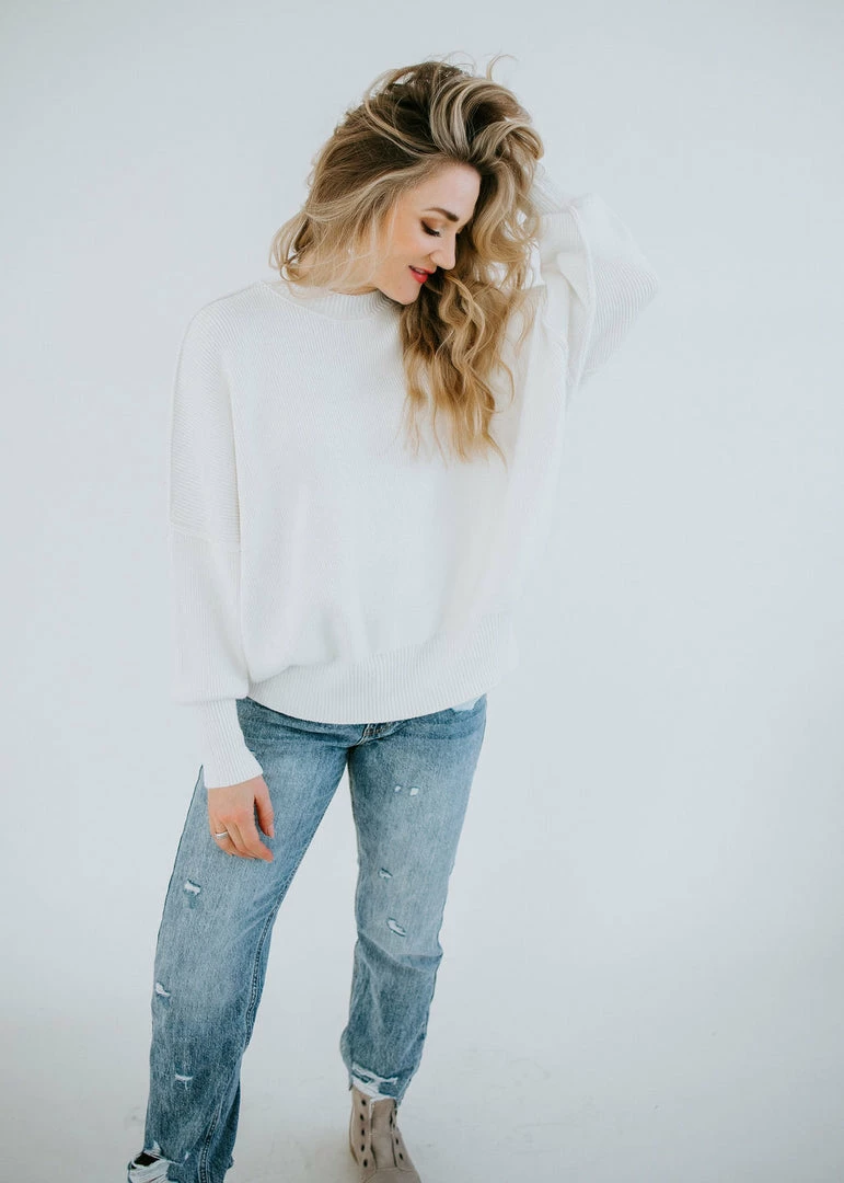 Every closet needs a versatile throw-on-and-go sweater! This Lauriebelles exclusive is the perfect get-cozy style that has been designed by Chelsea DeBoer and Laurie to be your next wardrobe hero. Snuggly ribbed knit shapes the relaxed silhouette that serves up effortless style with luxe comfort. Beautifully constructed with a mock neck, seaming details throughout, and a wide-cut bodice that gently tapers at the waist. Long sleeves are styled with dropped shoulders and end with long fitted cuffs. Pair it with your favorite jeans, ankle booties, and a wide-brimmed hat. Or wear it over a maxi-length dress and boots for a flawless look.