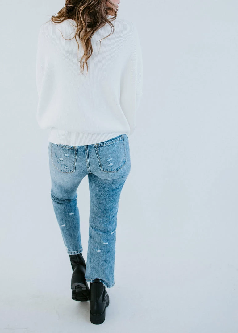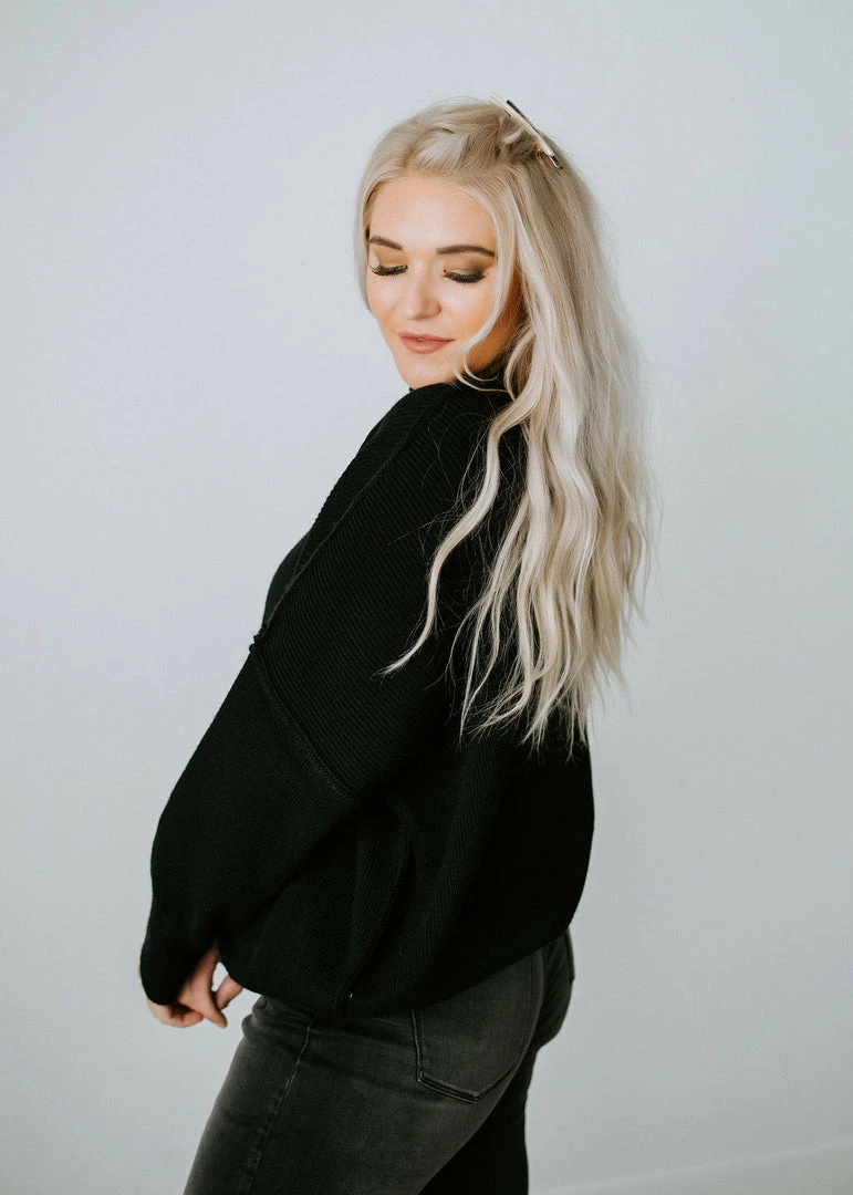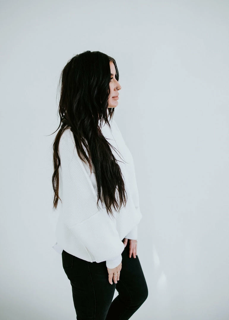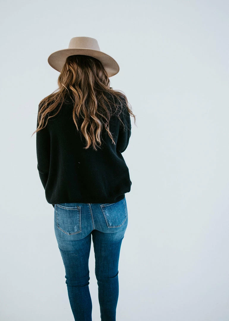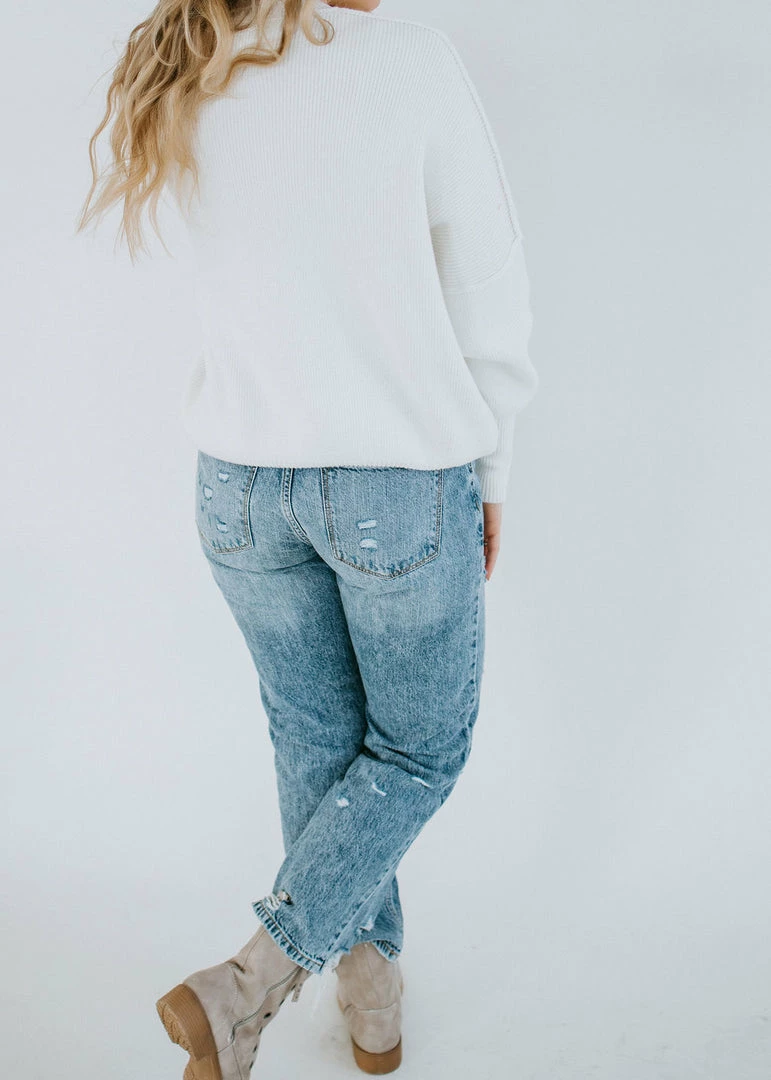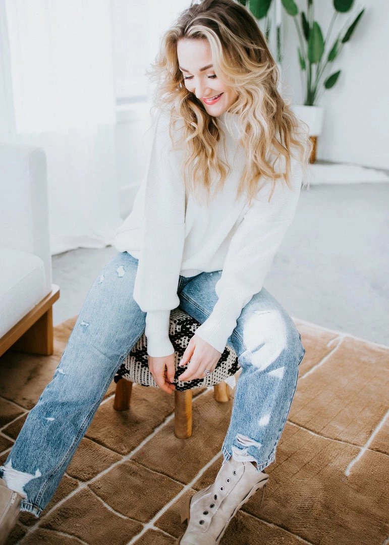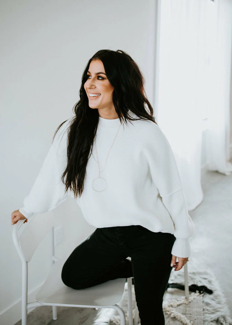 Every closet needs a versatile throw-on-and-go sweater! This Lauriebelles exclusive is the perfect get-cozy style that has been designed by Chelsea DeBoer and Laurie to be your next wardrobe hero. Snuggly ribbed knit shapes the relaxed silhouette that serves up effortless style with luxe comfort. Beautifully constructed with a mock neck, seaming details throughout, and a wide-cut bodice that gently tapers at the waist. Long sleeves are styled with dropped shoulders and end with long fitted cuffs. Pair it with your favorite jeans, ankle booties, and a wide-brimmed hat. Or wear it over a maxi-length dress and boots for a flawless look.