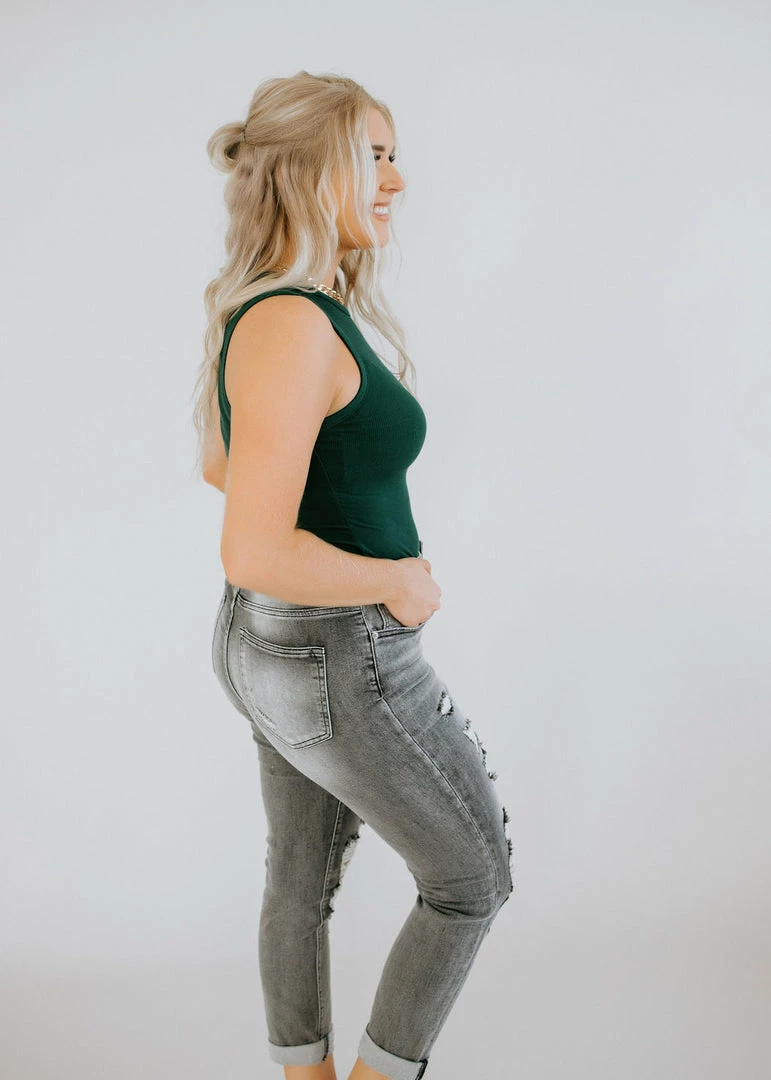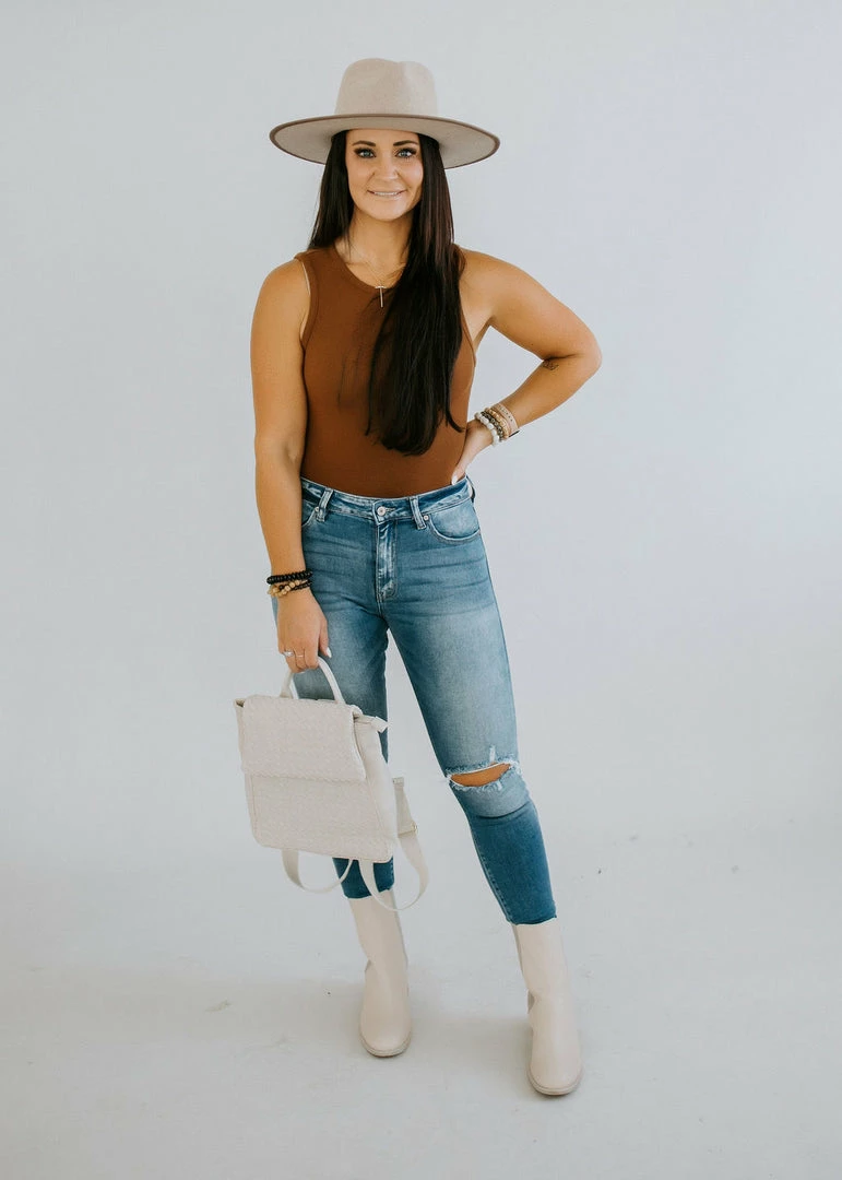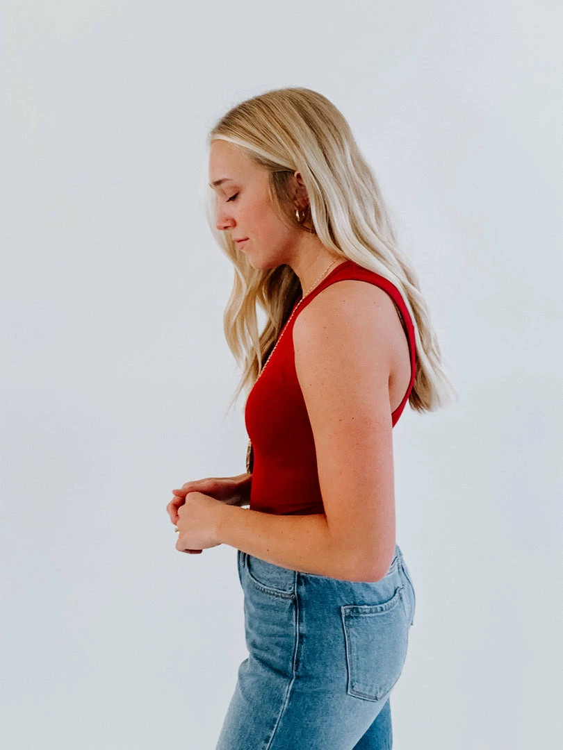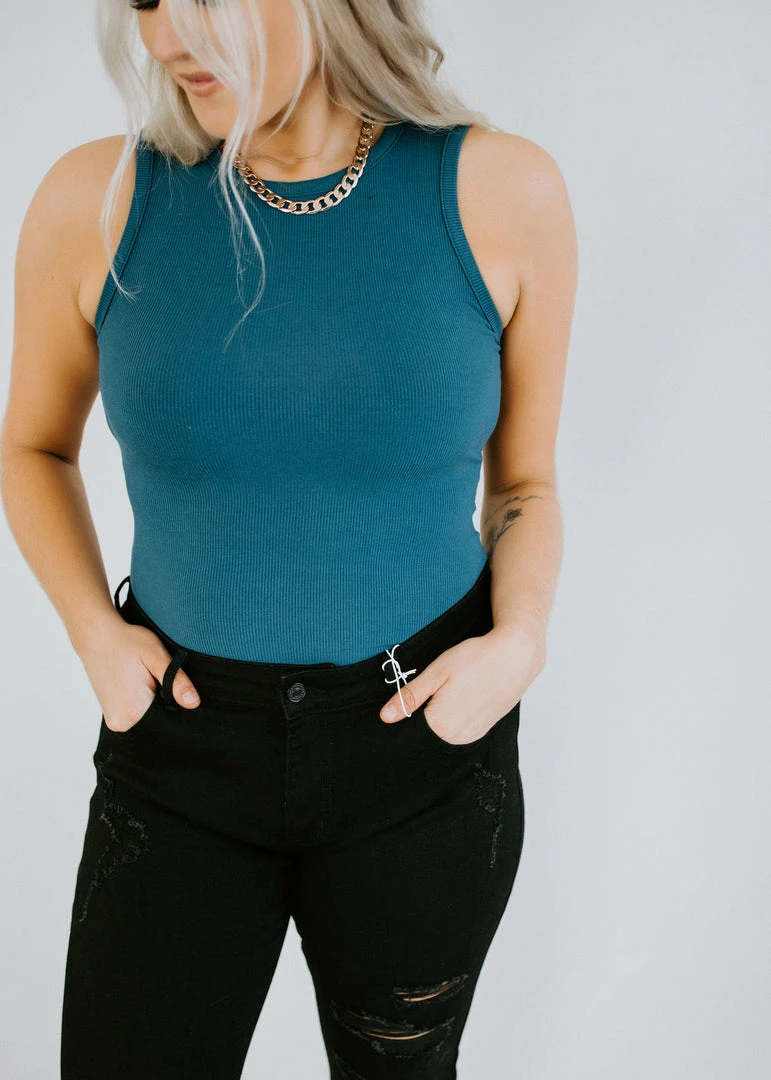 Smooth, sculpt and define your silhouette in the Jaide Bodysuit. Thick ribbed knit material flatters you the way you want it to, while the thong style, snap button closure keeps your look cool, crisp, and tucked. Baylee and Laurie are wearing smalls. Kaylor is wearing a medium.
