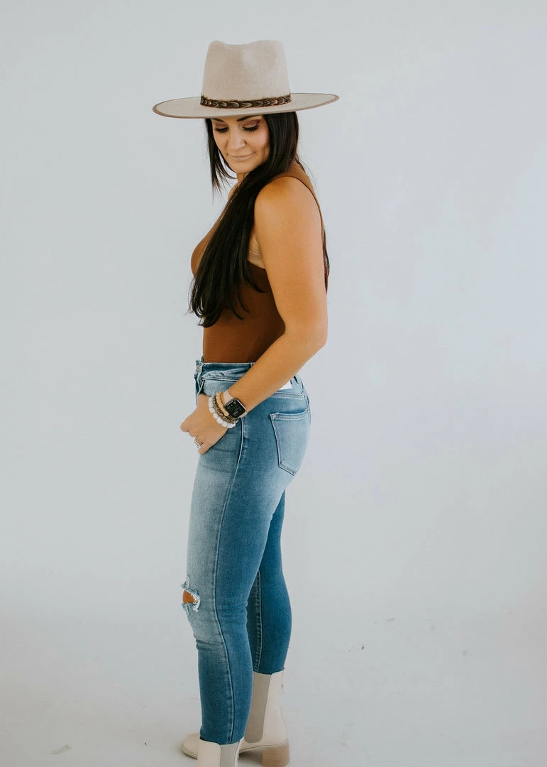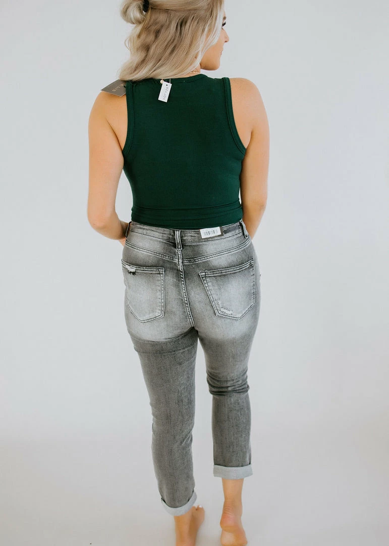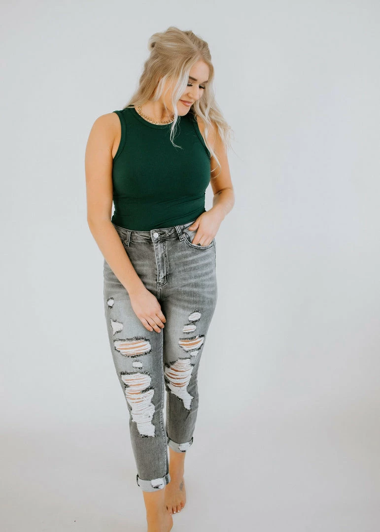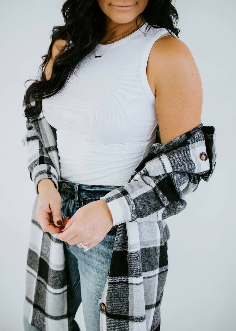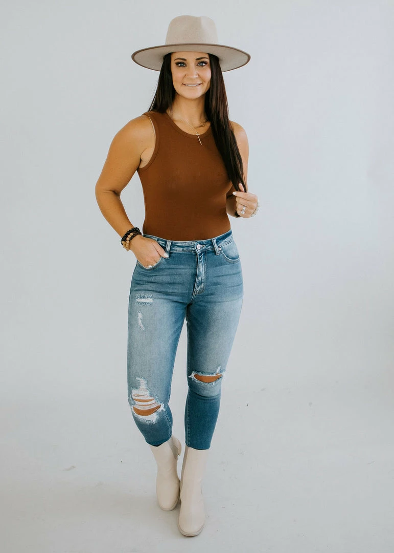 Smooth, sculpt and define your silhouette in the Jaide Bodysuit. Thick ribbed knit material flatters you the way you want it to, while the thong style, snap button closure keeps your look cool, crisp, and tucked. Baylee and Laurie are wearing smalls. Kaylor is wearing a medium.