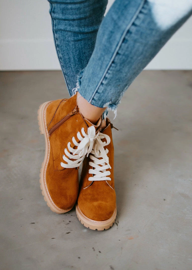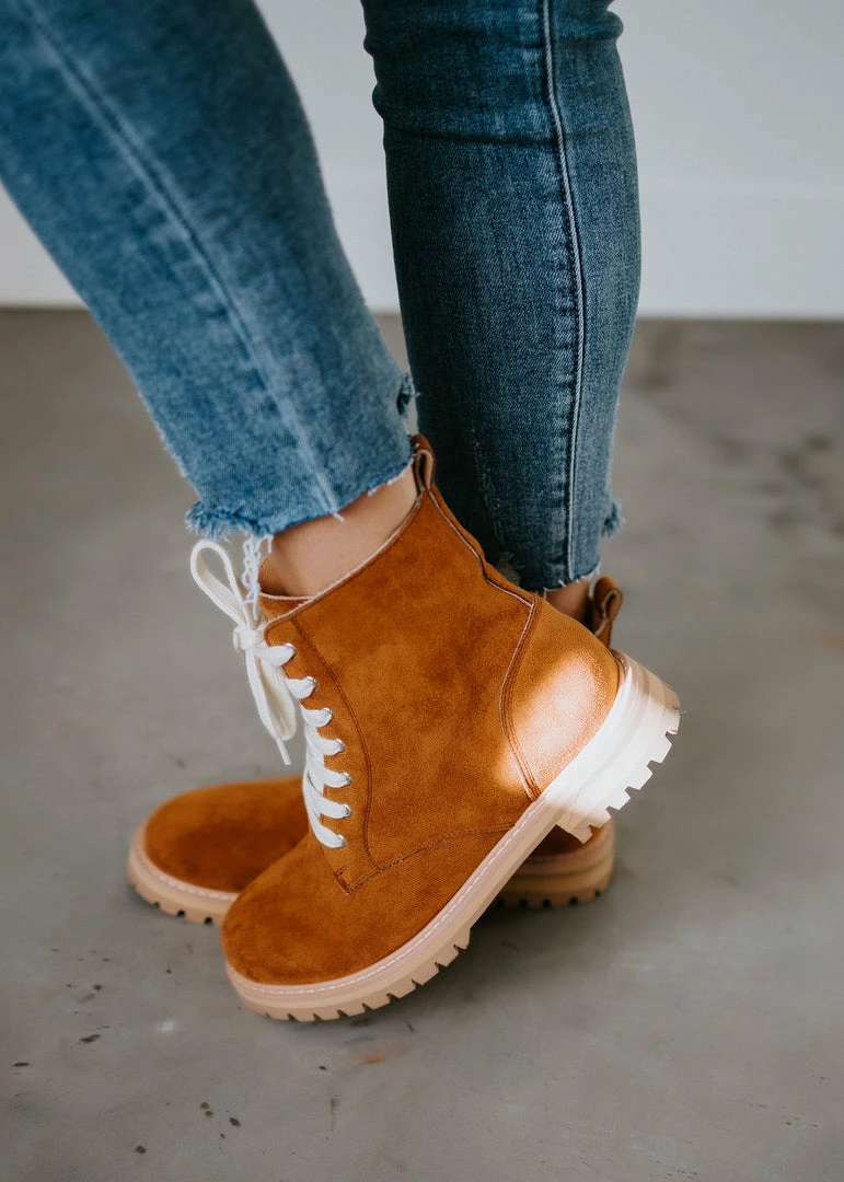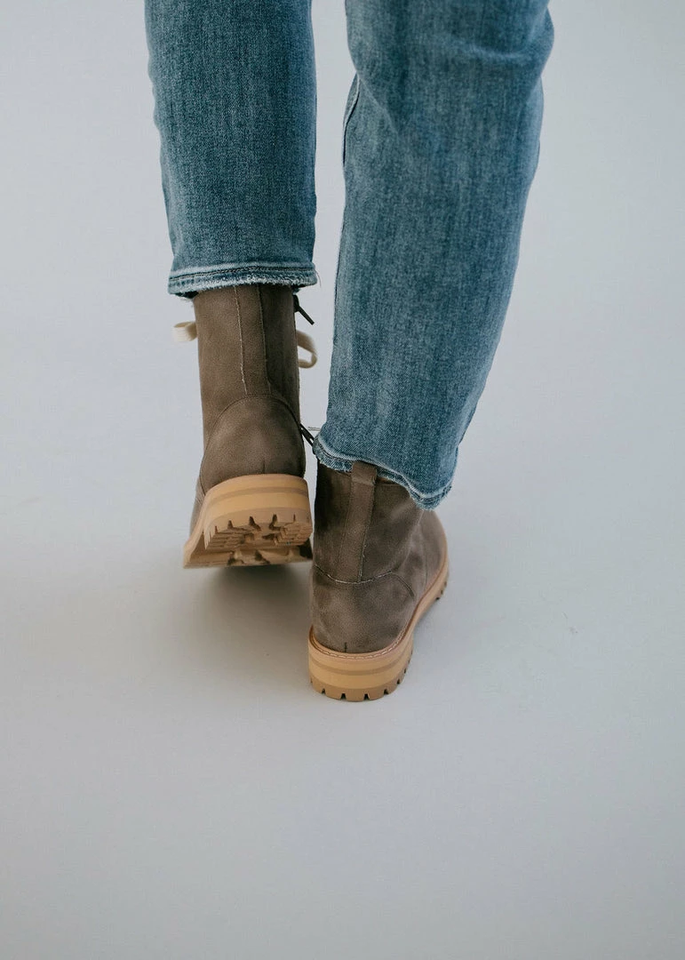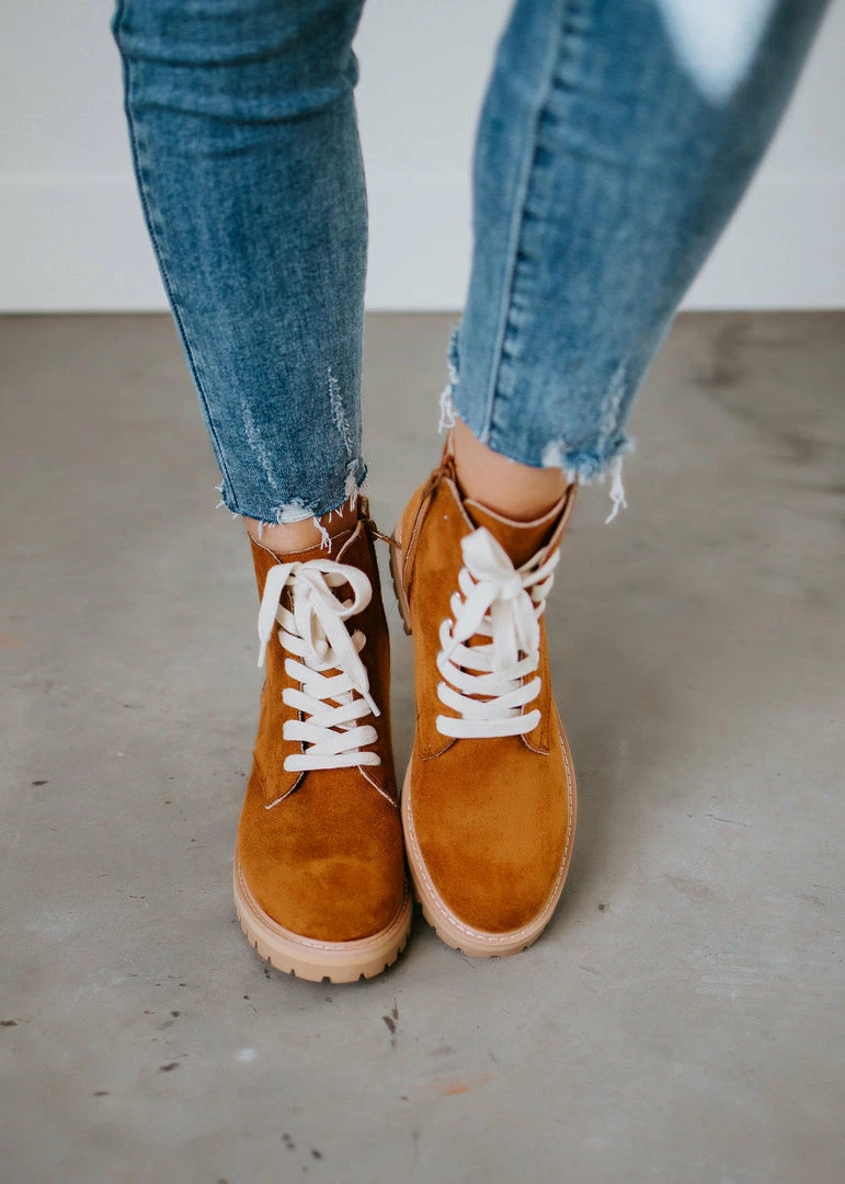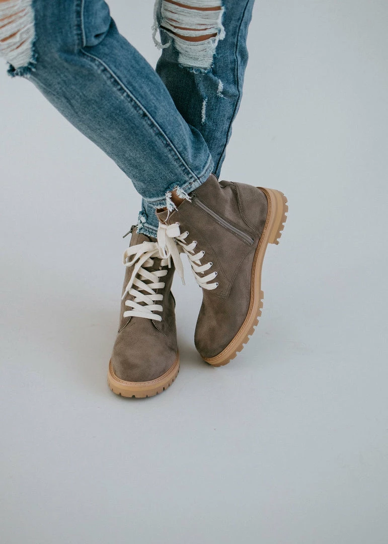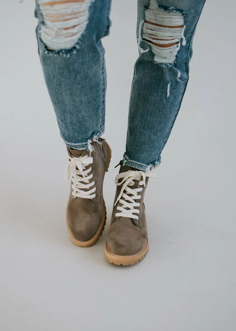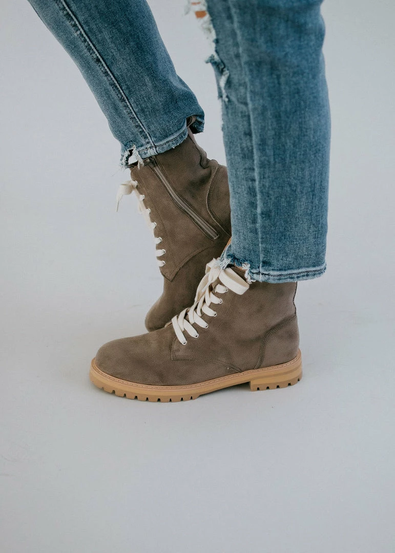 A contemporary military boot designed for fashionistas! Crafted with soft faux suede that will accent any wardrobe. Round toe, stitched detailing, padded footbed, and a rubber sole completes this season’s must-haves. So comfortable!