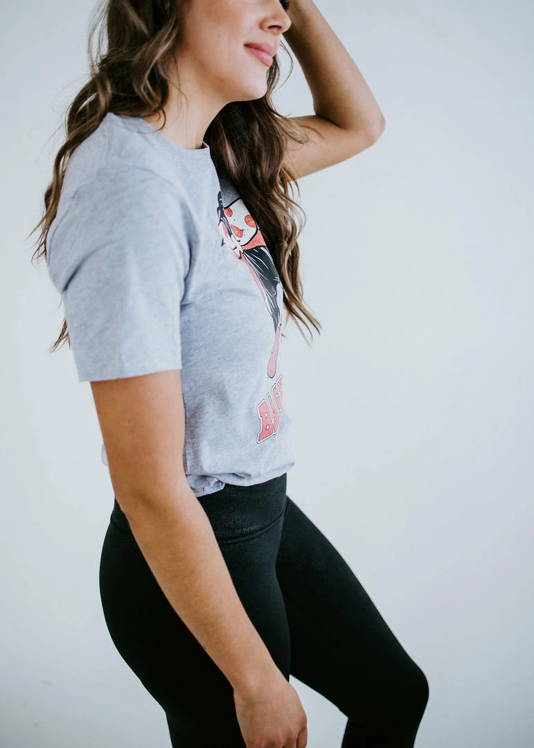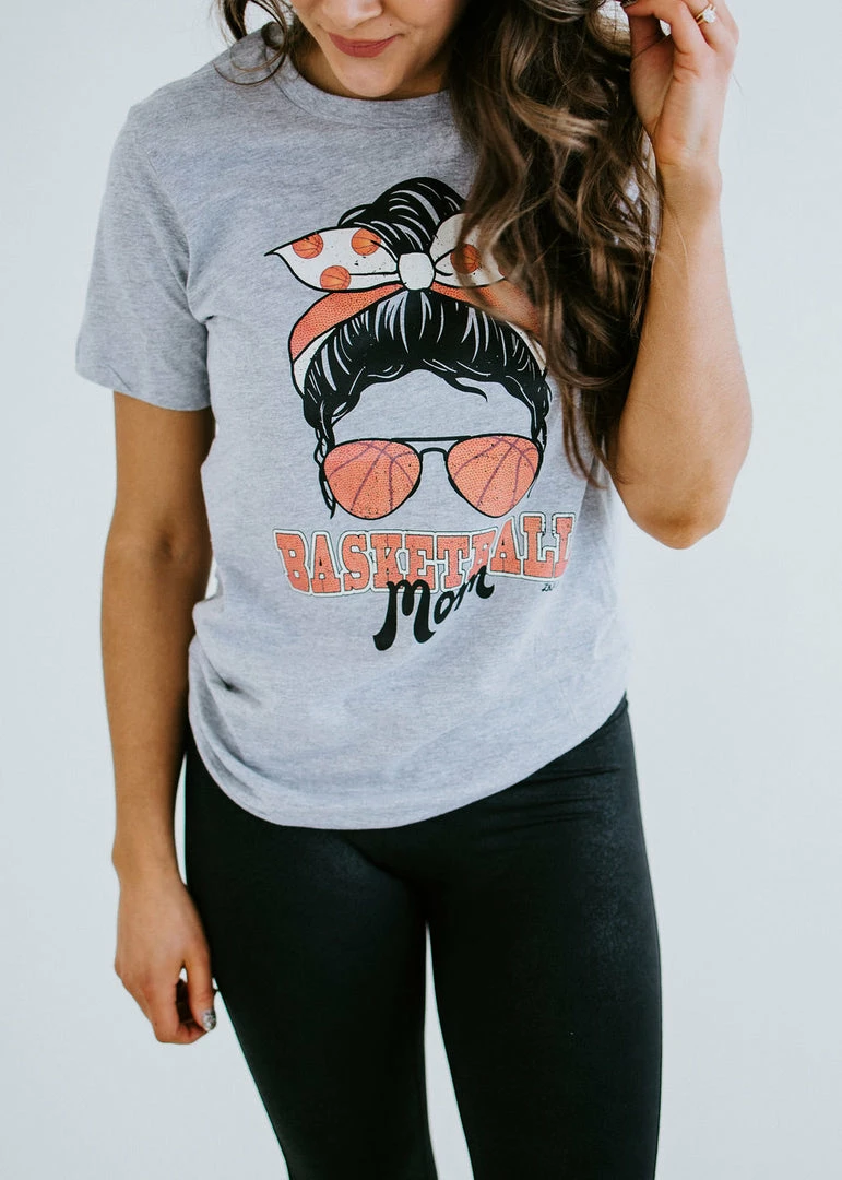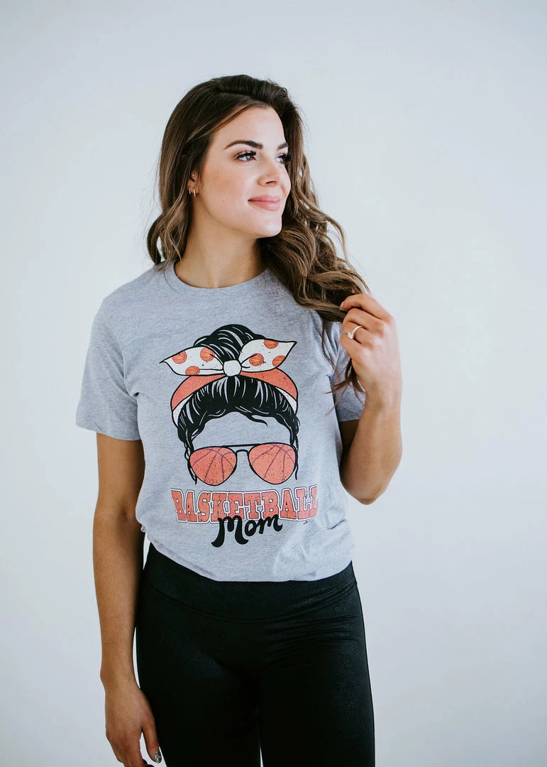 Cheer on your favorite baller in this new Basketball Mom Graphic Tee! The perfect option for game day. Pair with joggers and a denim jacket to be the best dressed mom in the cheering section. Kara is wearing a small.