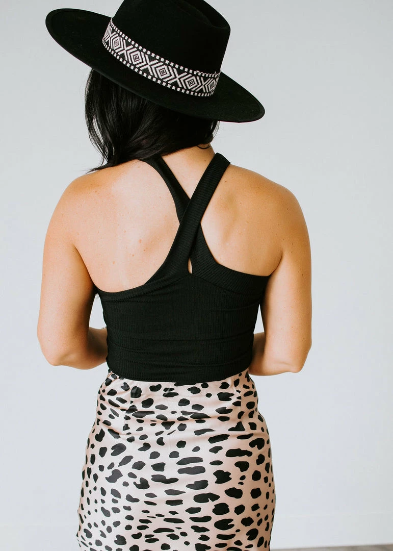 The Cross The Line Crop Tank is here and ready to mingle! This party-ready top is shaped from ultra-soft, stretch knit fabric that shapes a fitted, sleeveless bodice with a chic cross-front neckline and back. Finished in a cropped hem for a trendy take. Pair with your favorite high-rise boyfriend jean for a warm-weather-ready look. Laurie wears a small.