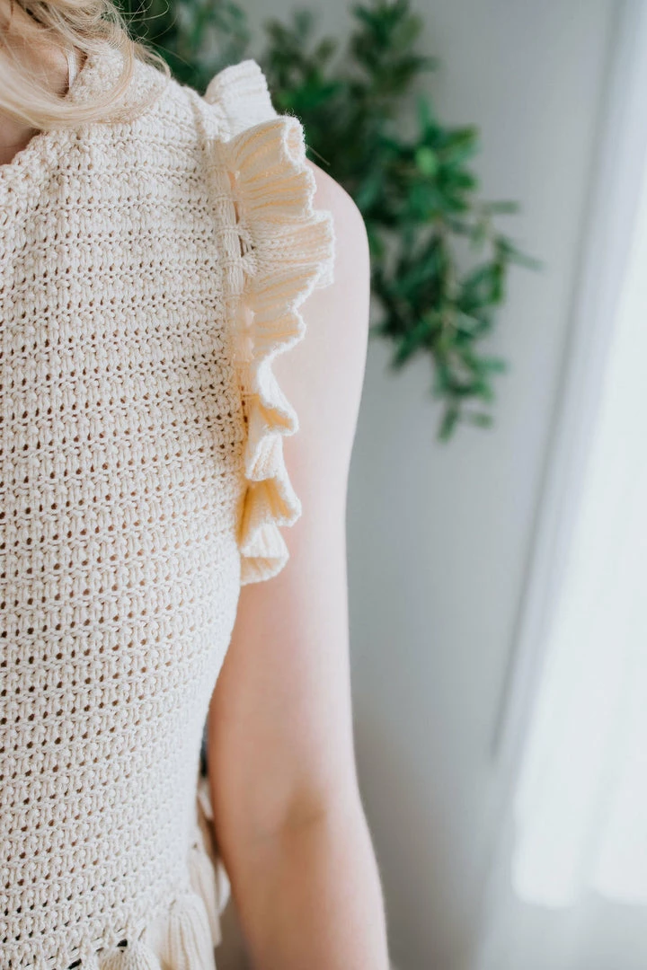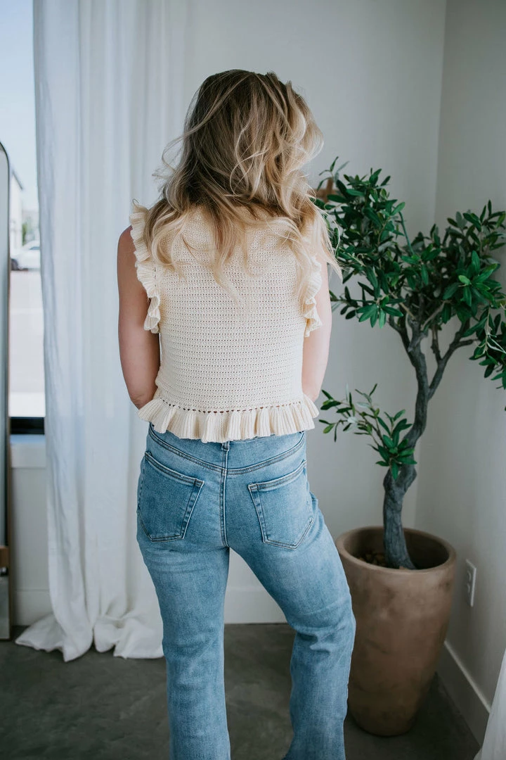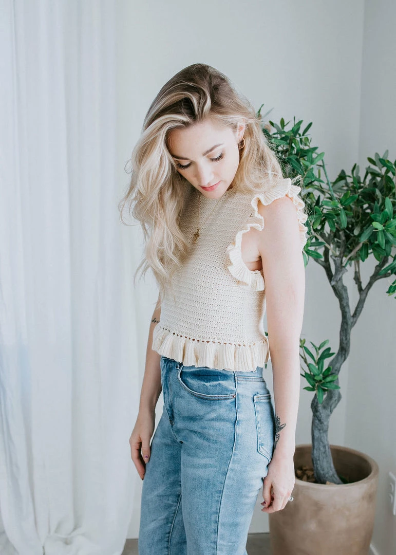 The Kai Ruffle Tank will be super sweet for the summer season! Featuring a rounded neckline, thick straps, and a cropped bodice. Softly detailed with ruffle details for a femme touch! Pair with high waisted denim and heels for an elevated summer look! Leslie is wearing a small.