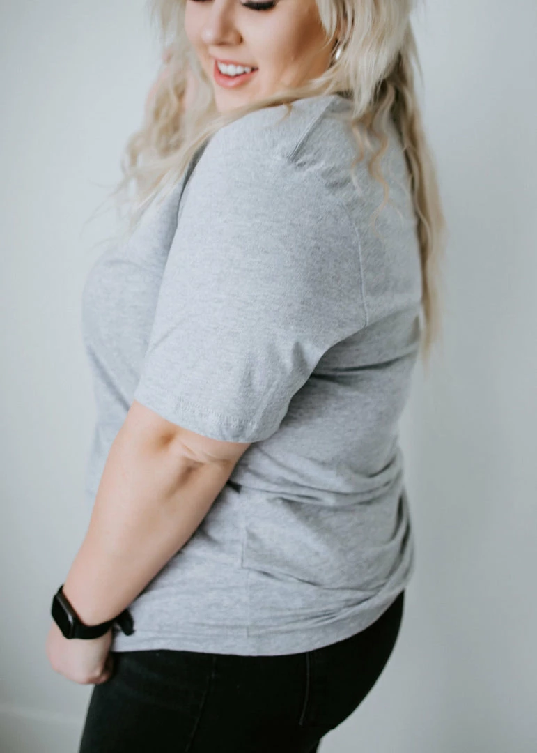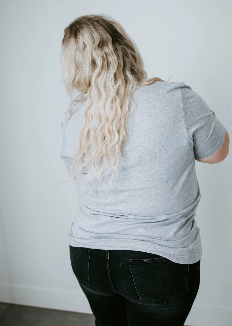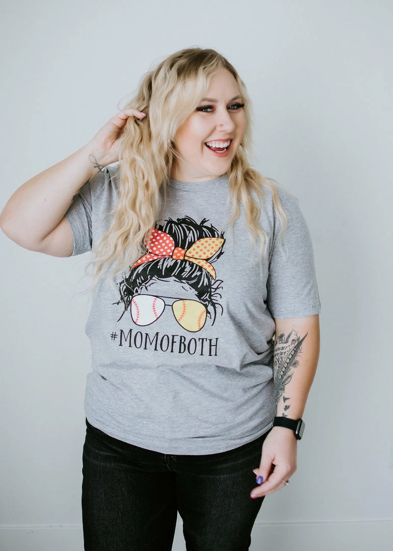 Cheer on your favorite ballers in our Mom of Both Graphic Tee! Features a crew neck, short sleeves, and a relaxed fit. This adorable tee is designed with a messy bun graphic and sunglasses with baseball and softball lenses making it the perfect option for game day. Pair with jeans and sneakers to be the best dressed mom in the cheering section! Loghin is wearing an XL.
