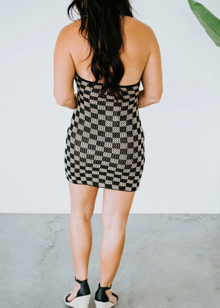 Enjoy the vintage life in the Game Maker Mini Dress. This one-of-a-kind piece features a checkered pattern in a mini length. Style yours with strappy heels and a headband. Perfect for a swimsuit or a night out moment. Laurie is wearing a small.