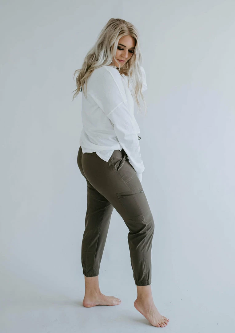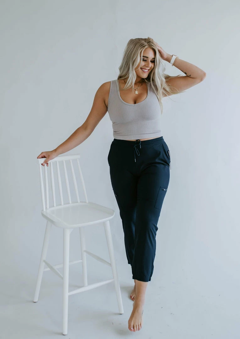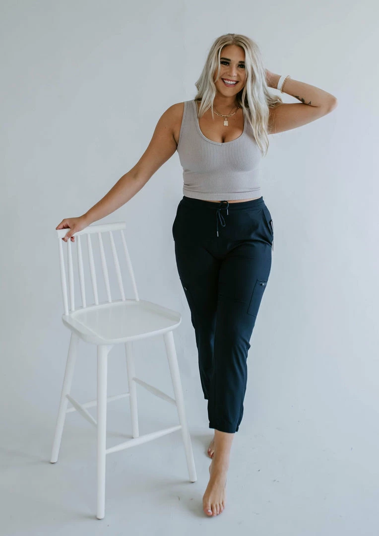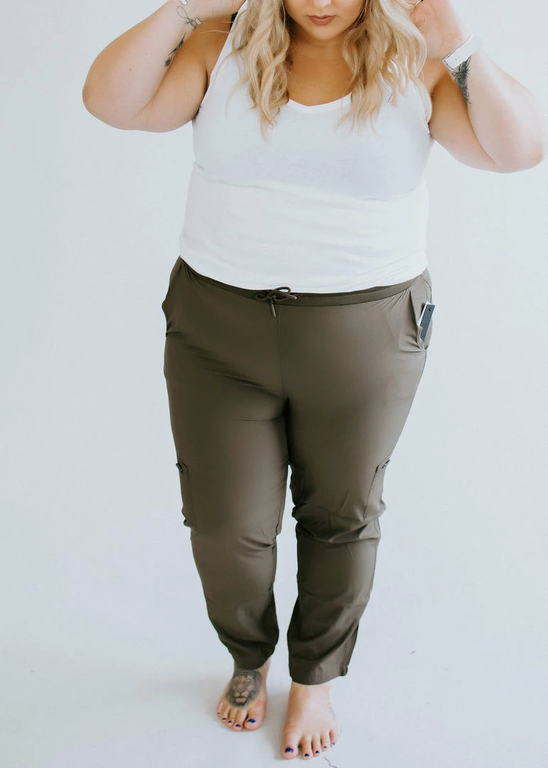 Kaleigh Joggers are the perfect balance between fashion and function with the thick waistband, drawstrings, functional utility pockets, and the most breathable material! Workout, running errands, lunch with the gal pals–these joggers are meant for everyday use, all day long. Baylee is wearing a small, Kaylor is wearing a large and Loghin is wearing a 2XL.
