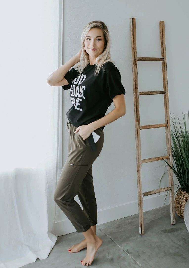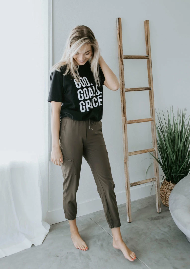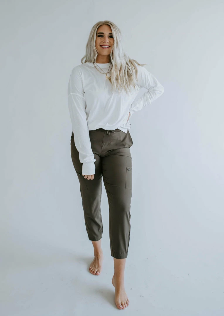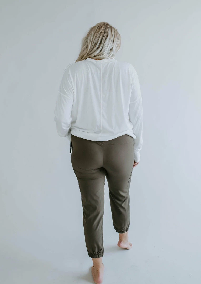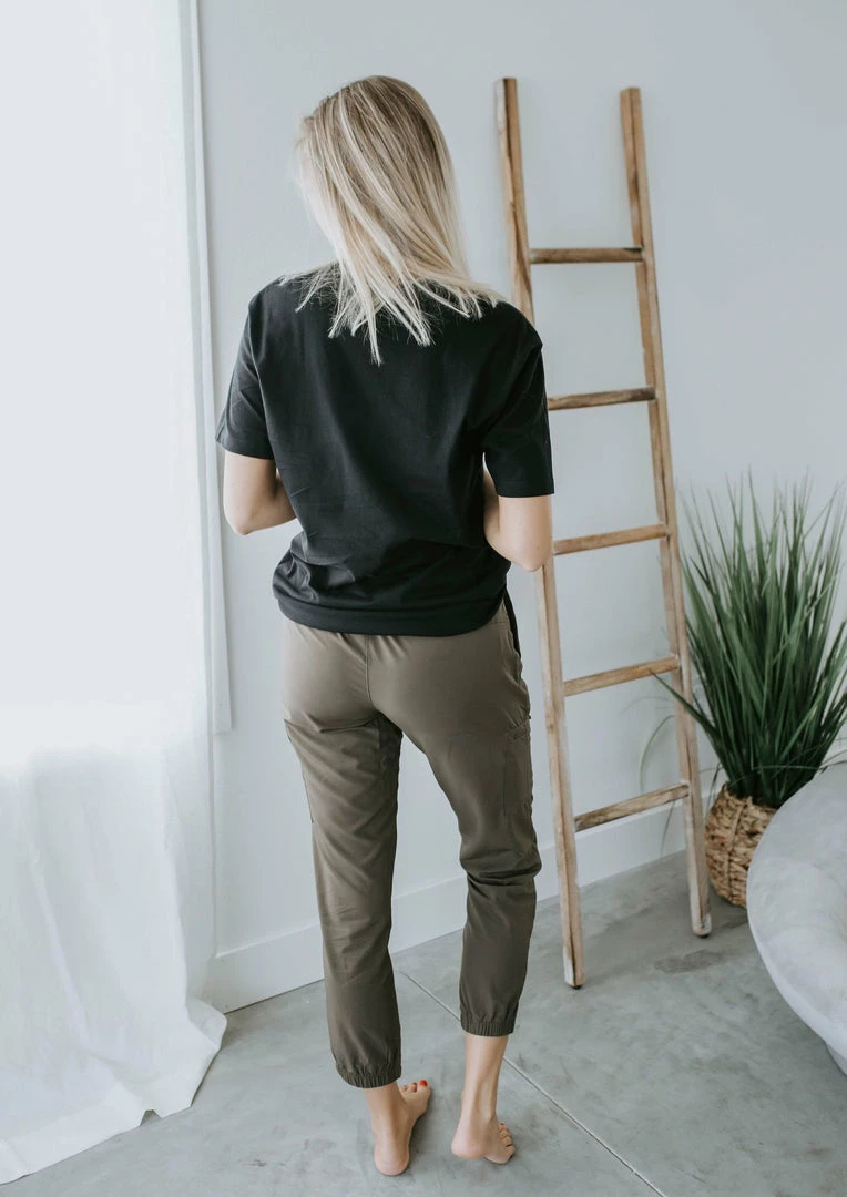 Kaleigh Joggers are the perfect balance between fashion and function with the thick waistband, drawstrings, functional utility pockets, and the most breathable material! Workout, running errands, lunch with the gal pals–these joggers are meant for everyday use, all day long. Baylee is wearing a small, Kaylor is wearing a large and Loghin is wearing a 2XL.