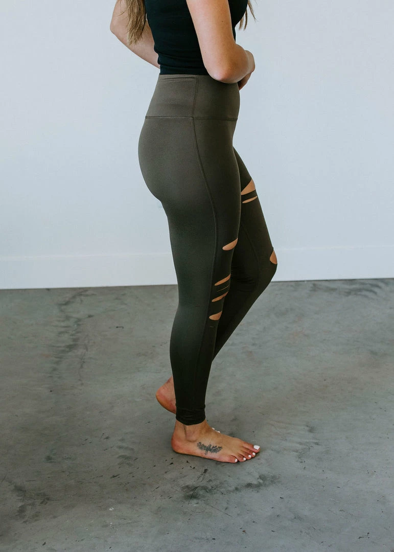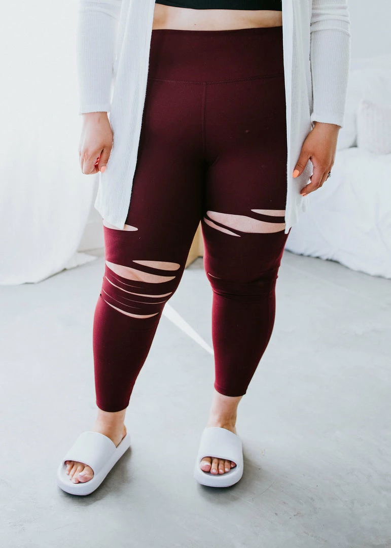 You can accomplish anything with these trendy active leggings. If you loved our Torn Apart Leggings, you are going to be just as obsessed with these soft high waisted leggings. Features a high waistband with a discreet pouch pocket, four-way stretch, tummy-control, and laser-cut slits on the front of the legs. Mono B brand. Fit TTS. Laurie and Baylee wear small, Loghin wears an XL, and Kaylor wears a medium.