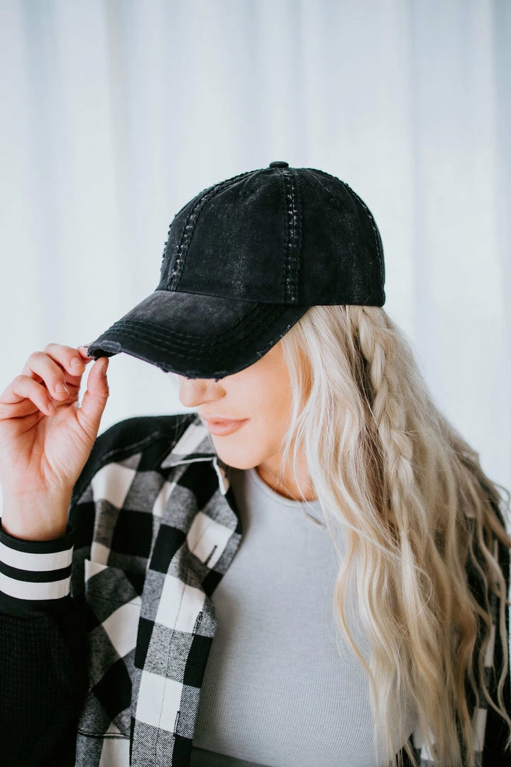 A cute and trendy way to accessorize your OOTD. Constructed in a washed cotton material with heavy stitching and sublte distressing throughtout. Secures with an adjustable faux leather strap.