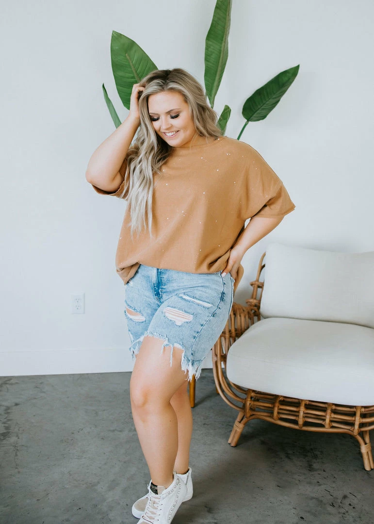 When you’re searching for a year-round classic tee look no further than the Shelbie Splatter Paint Tee. Featuring a rounded neckline, drop shoulder sleeves, with a unique splatter paint design. Complete with a soft cotton fabric, oversized fit, with a rounded hemline. Pair with distressed shorts and a rancher hat for an easy summer look. Shelby is wearing a medium.