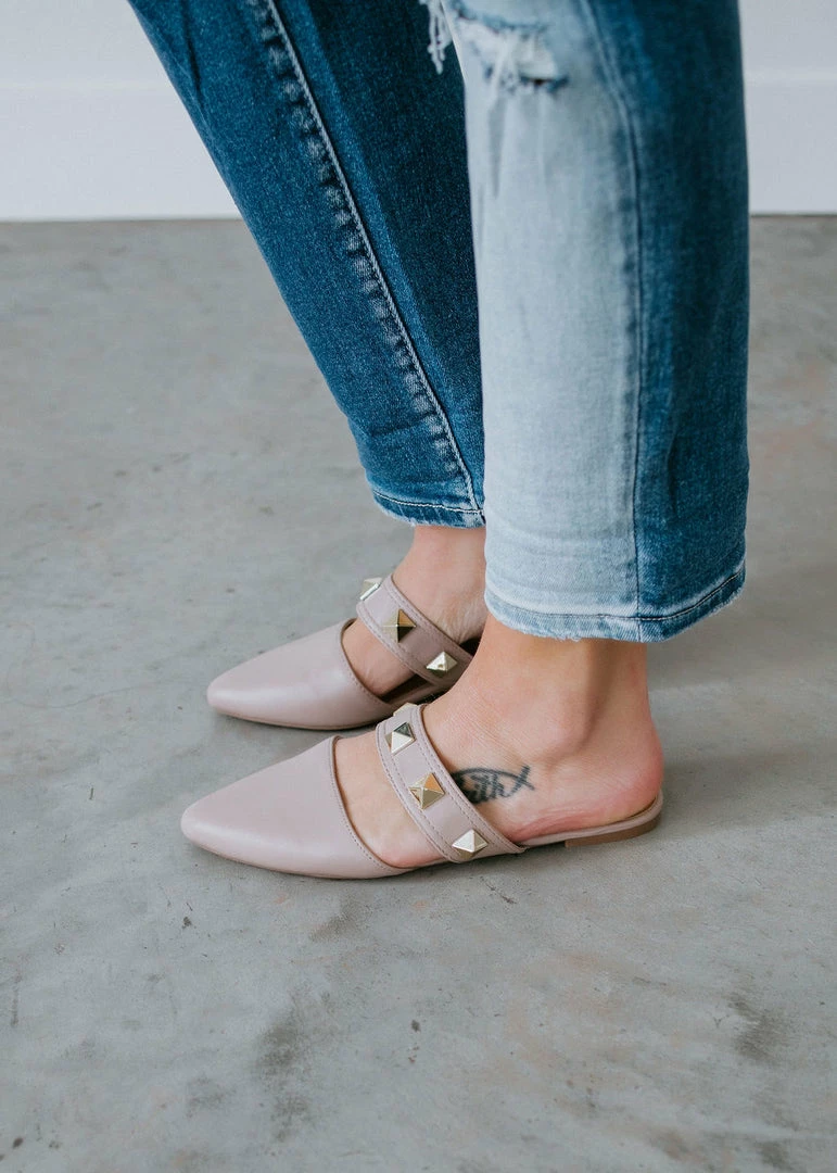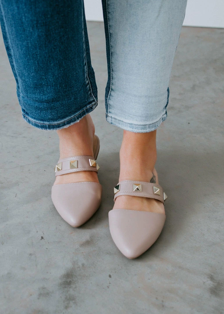 Feminine meets edgy in the Time To Shine Studded Mule. Made from faux leather with a slip-on design, pointed toe, and gleaming studs across the vamp – a versatile option to compliment all your dressy-casual looks!