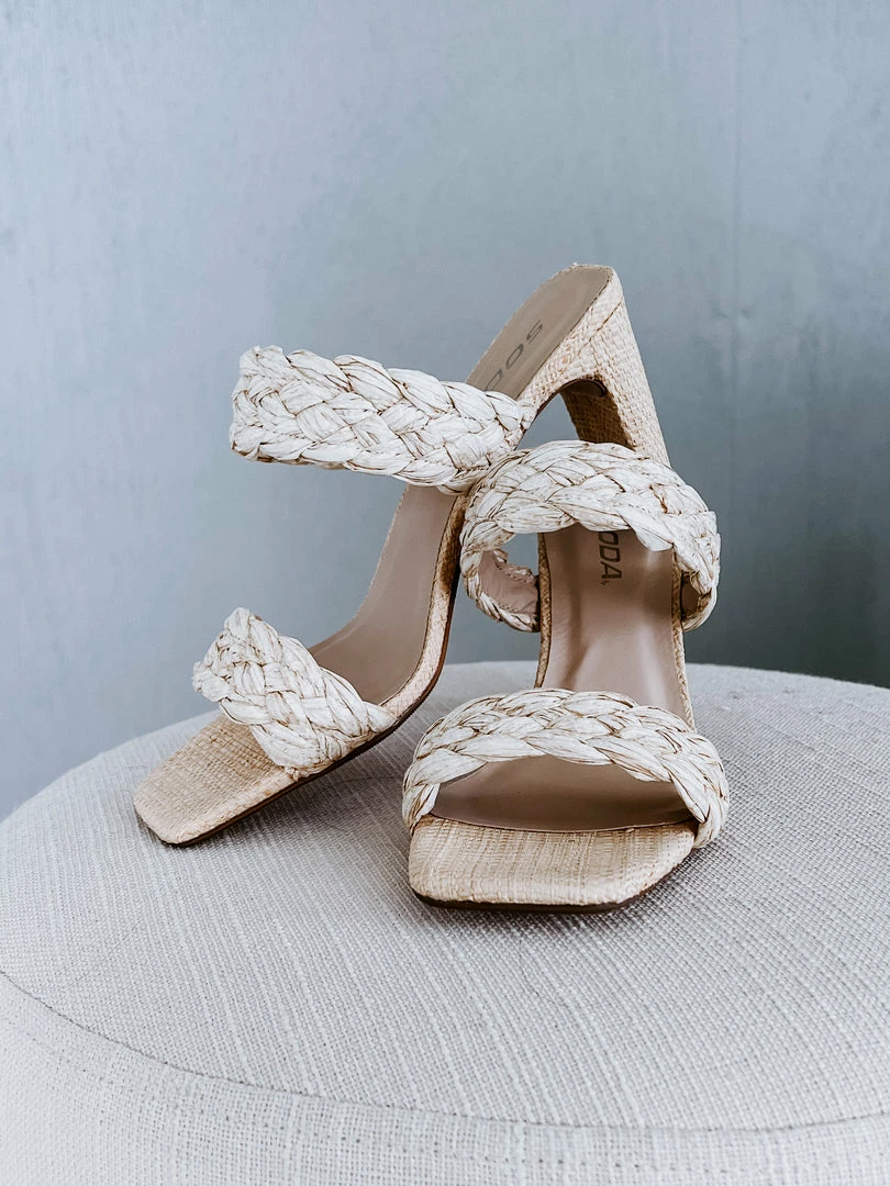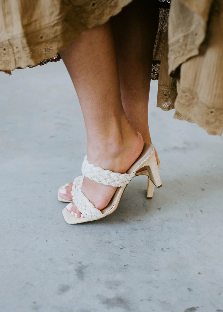Step into warmer days with these raffia-inspired heels. Chunky braided straps deliver on-trend style to the slip-on design. Lifted by a heel and finished with a chunky sole. Pair with a maxi dress or jumpsuit for a brunch-ready look.