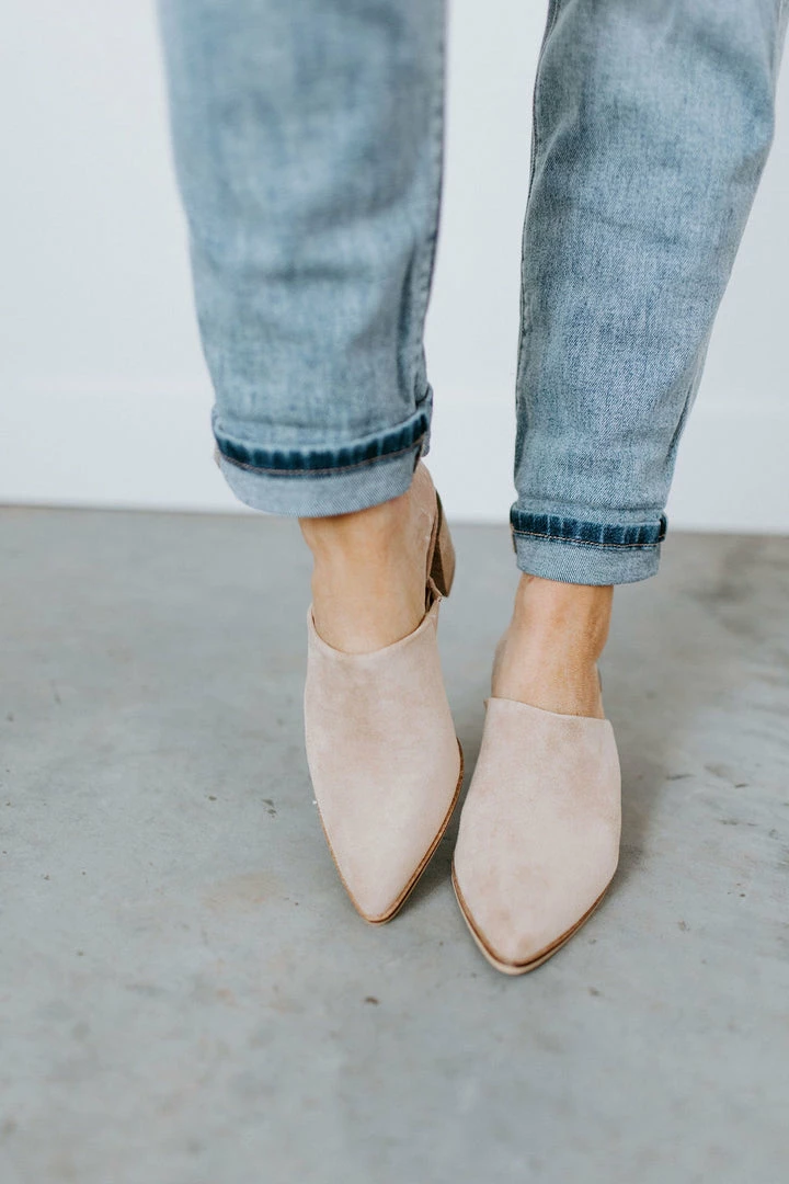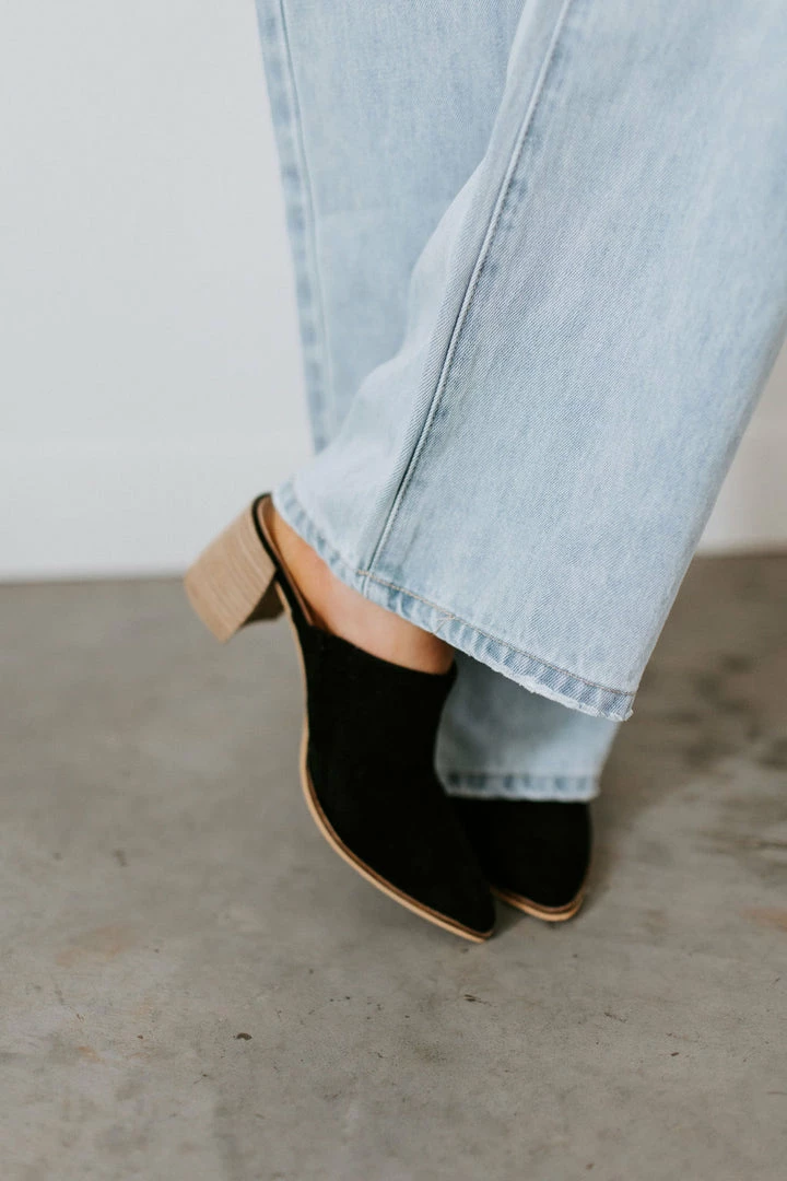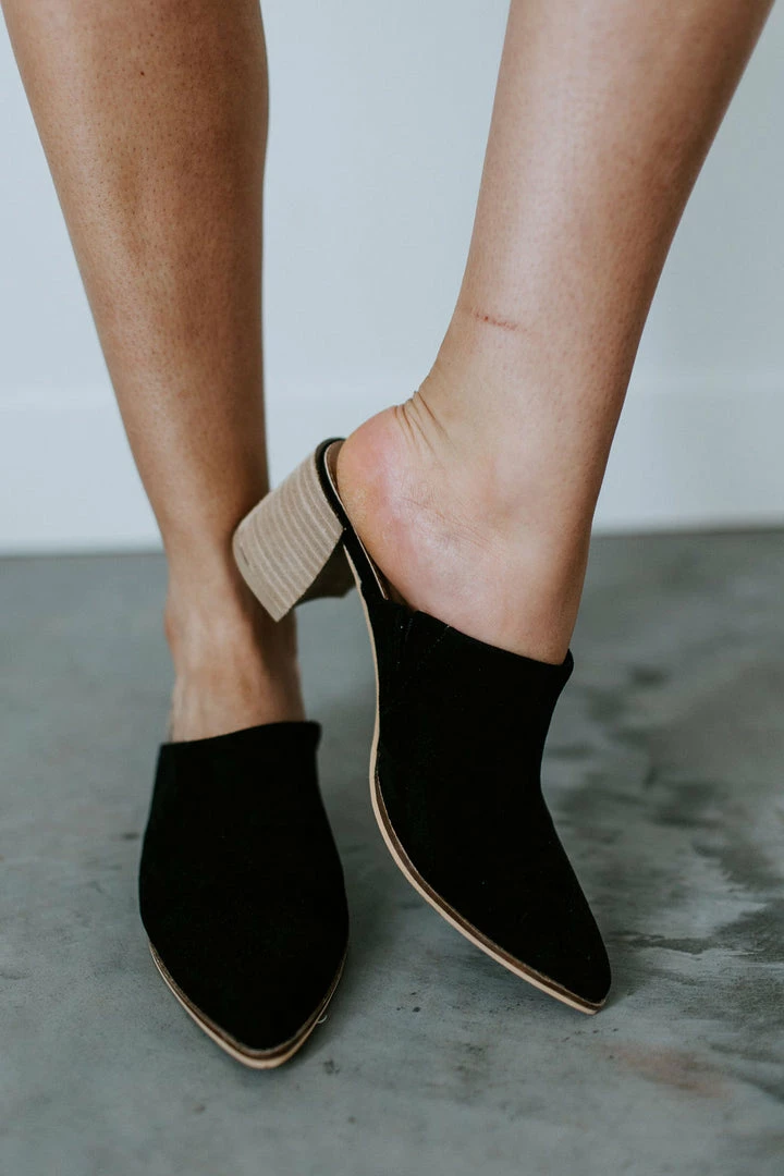 From the office to happy hour, these heeled mules have you covered. Soft faux suede creates a pointed-toe, slip-on body, and a stacked block heel. Fit TTS.