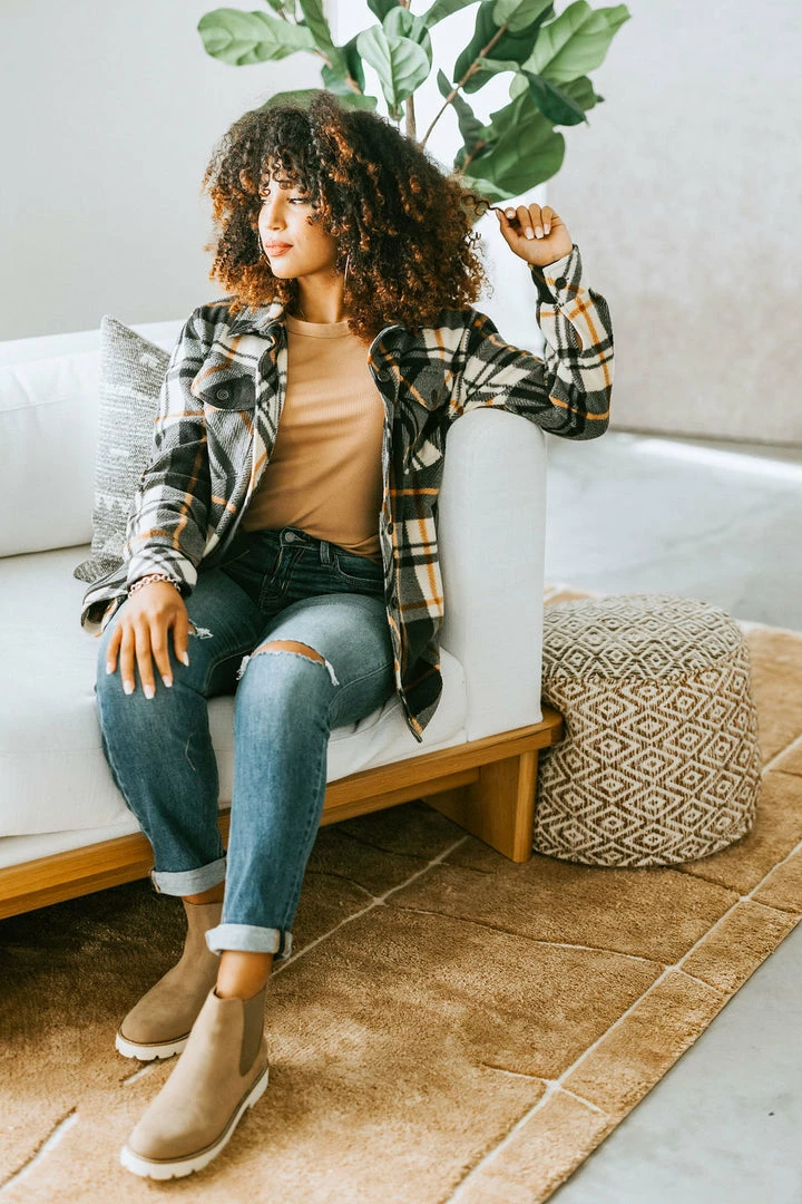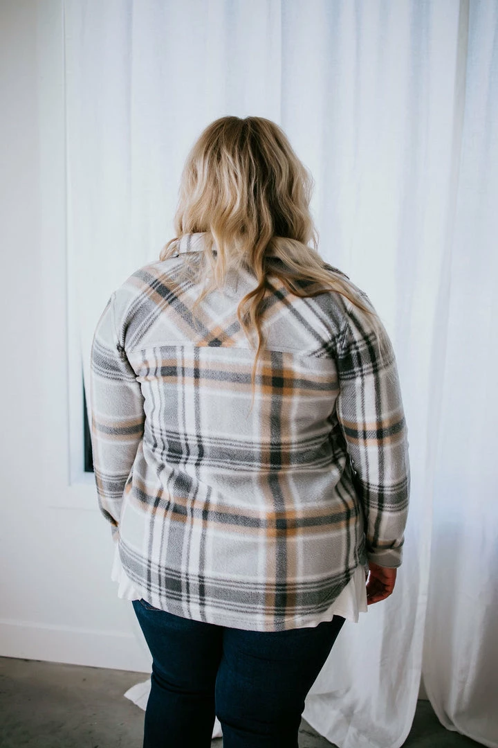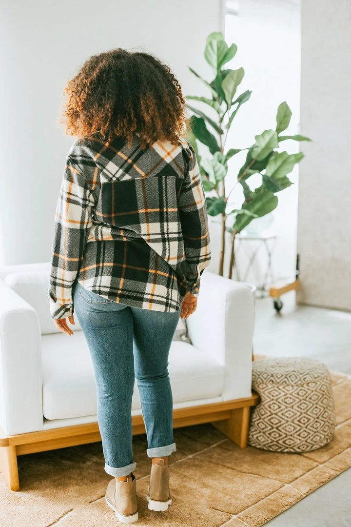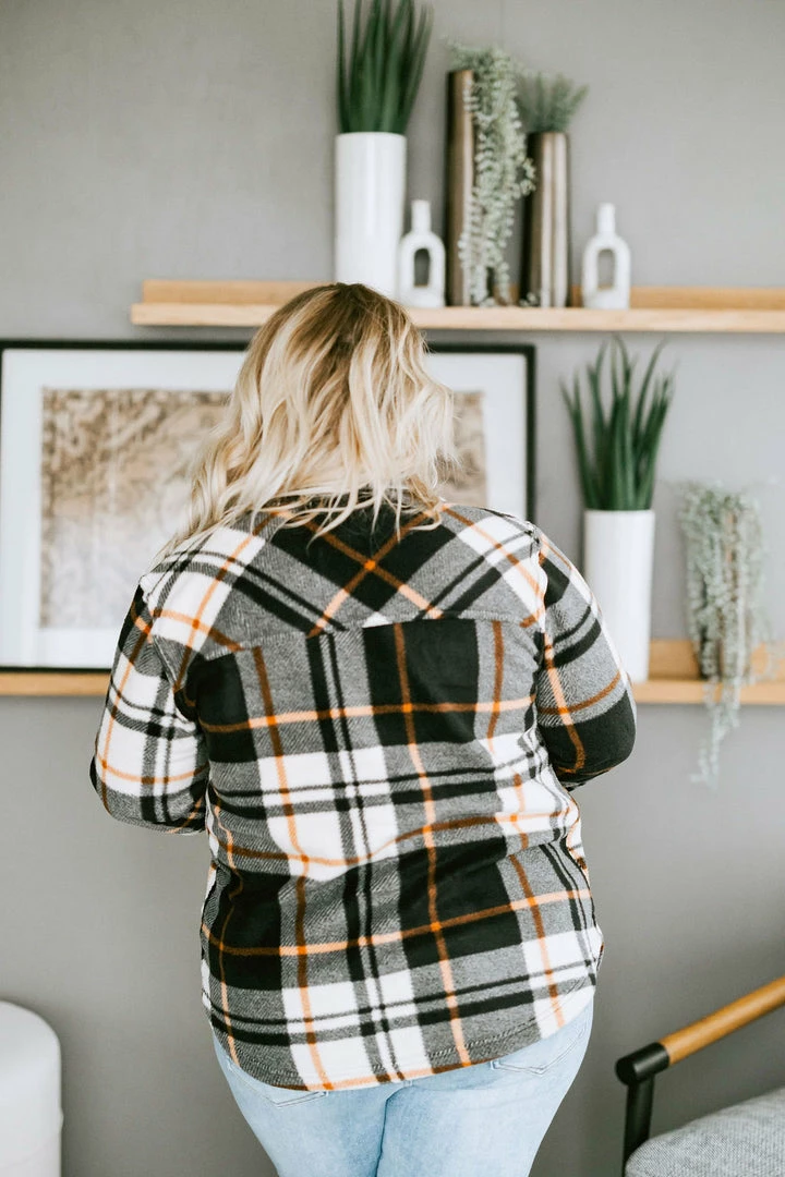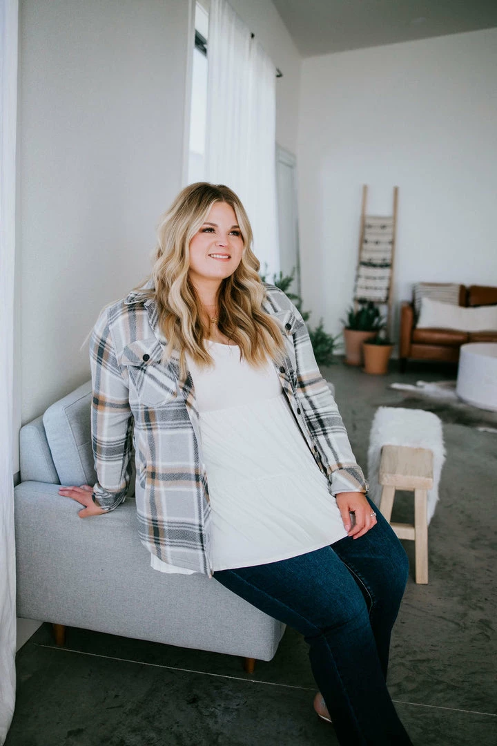 Cooler temps mean it’s time to break out your coziest plaids! This must-have shacket is the perfect option for staying stylish and comfortable this season. Made from ultra-cozy brushed fleece fabric with a collared neckline, dual front pockets, and button front closure. Long sleeves, button cuffs, and a shirttail hem complete the look. Hannah and Loghin are wearing a size large. Cathyliana is wearing a size small.