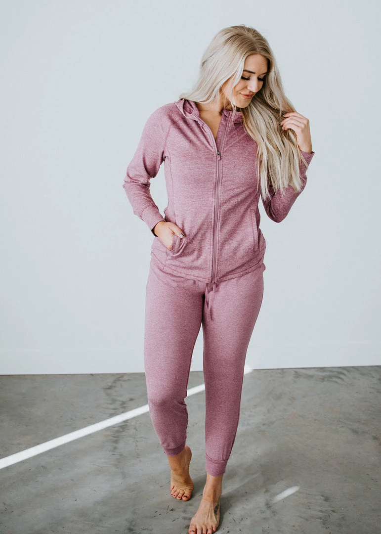 With all day comfort and style in mind, these joggers are a cozy, casual, and chic option for your day-to-day endeavor. A standard elastic waistband highlights a chic touch with an added drawstring for an adjustable fit. Fitted at the ankle with a jogger hemline, these pants pair perfectly with basic tanks, tops, or jackets to complete the athleisure look. Match you outfit with the Mariya Zip Hoodie. Kaylor is wearing a medium and Kara is wearing a size small.