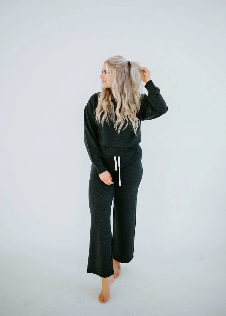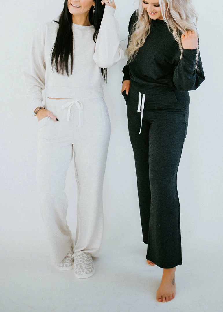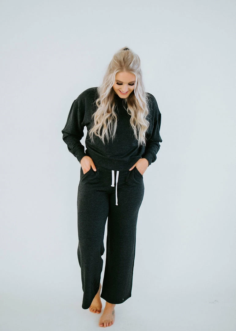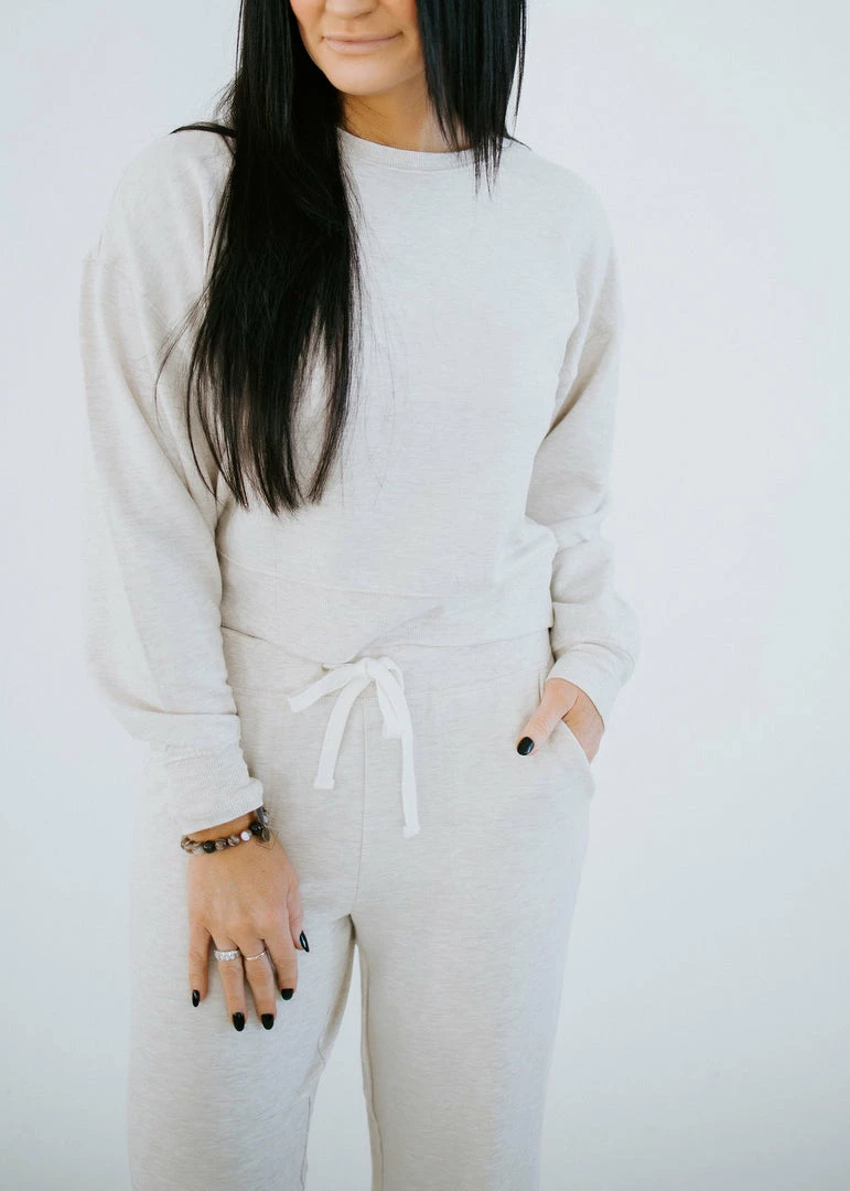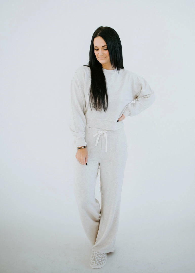This stylish lounge top is your ticket to cozy! Features super soft French terry construction with a crewneck and long sleeves. The pullover design includes dropped shoulders, a slightly cropped hem, and ribbed trim. Perfect for running errands or relaxing on the couch. You’ll be living in this top day and night! Create a cute and comfy look with the matching Ticket To Cozy Lounge Pant. Laurie is wearing a small and Kaylor is wearing a medium.