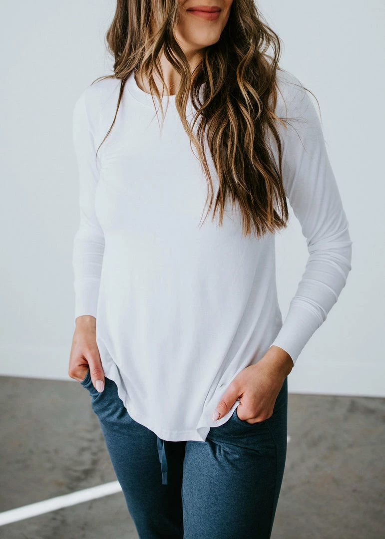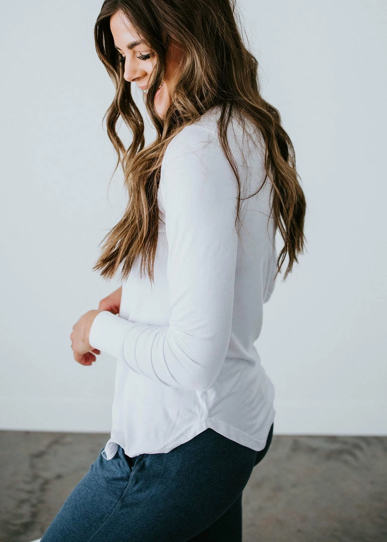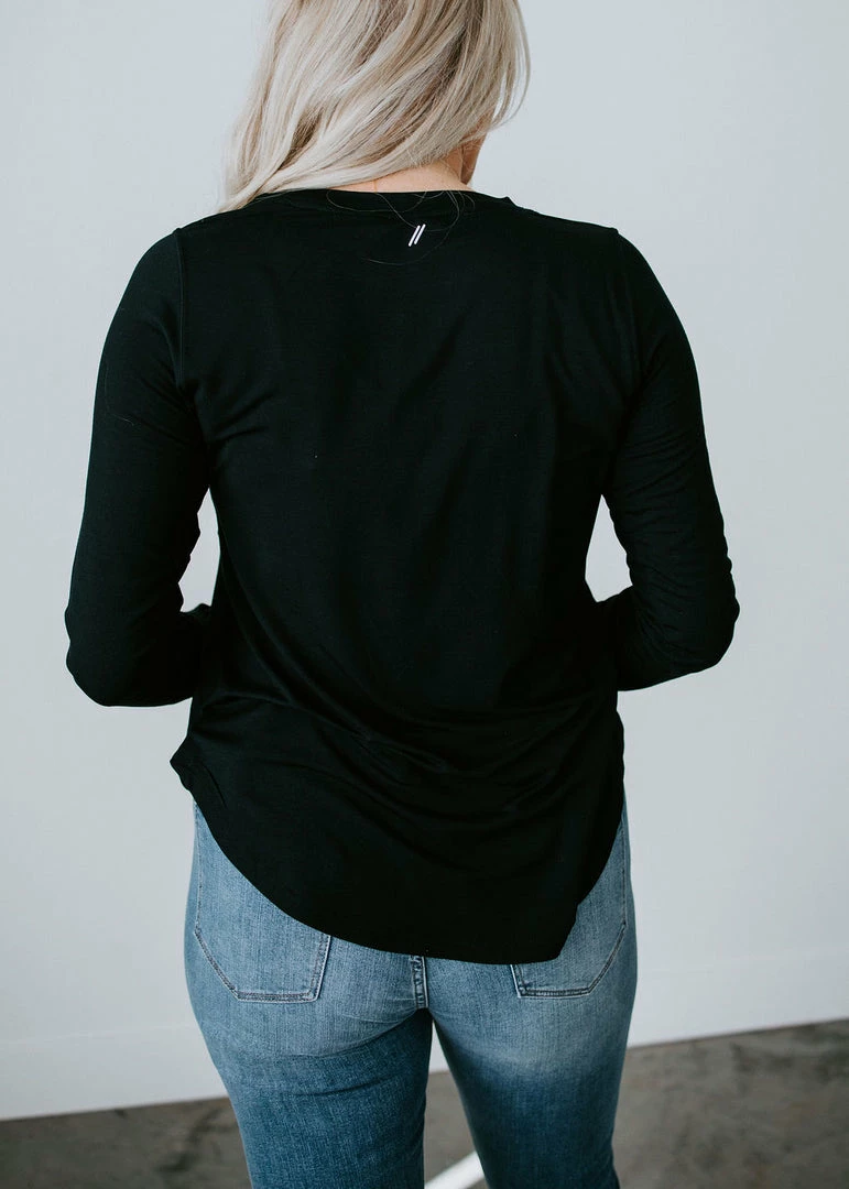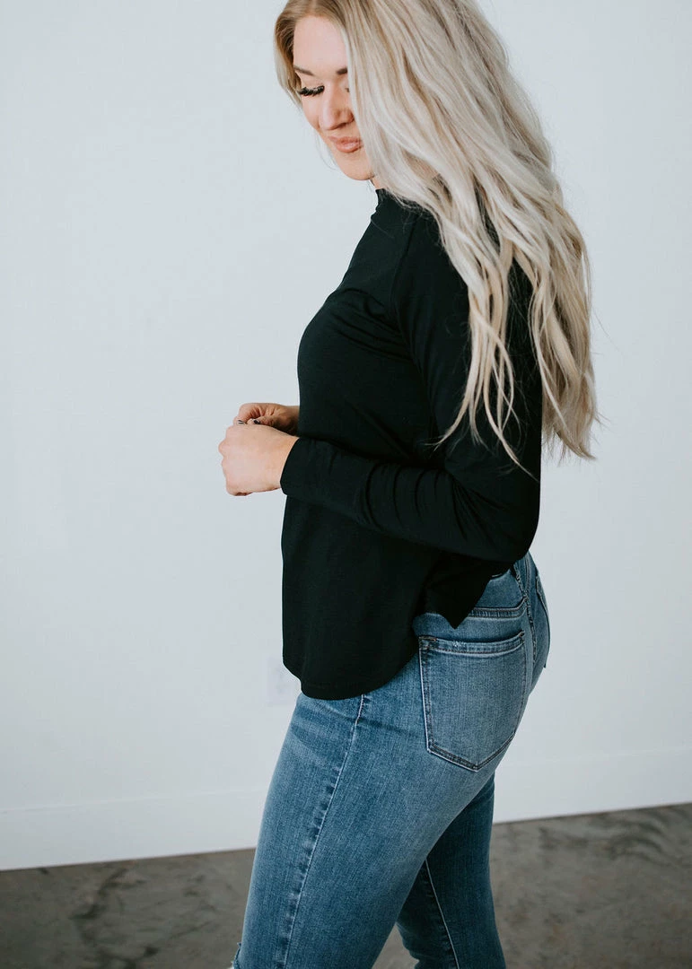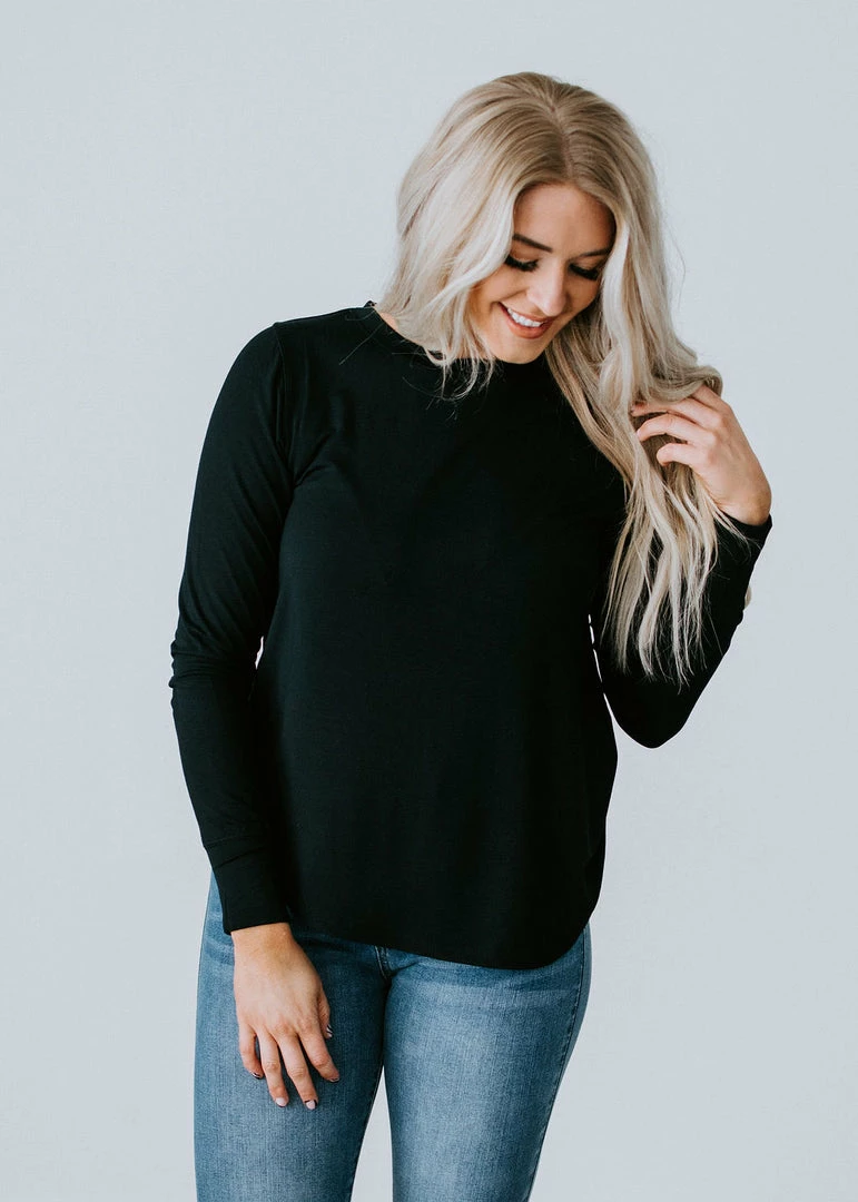 The staple piece of your dreams! The basic tee designed to be worn for multiple occasions. Pairs perfectly with a blazer and a statement necklace or with your favorite leggings for an athleisure look! Kaylor is wearing a medium and Kara is wearing a small.