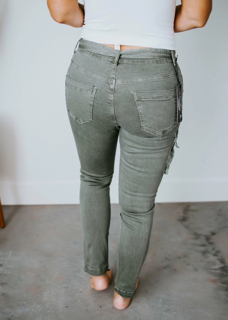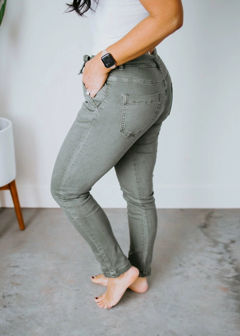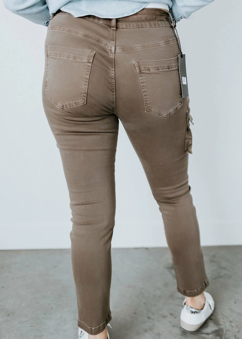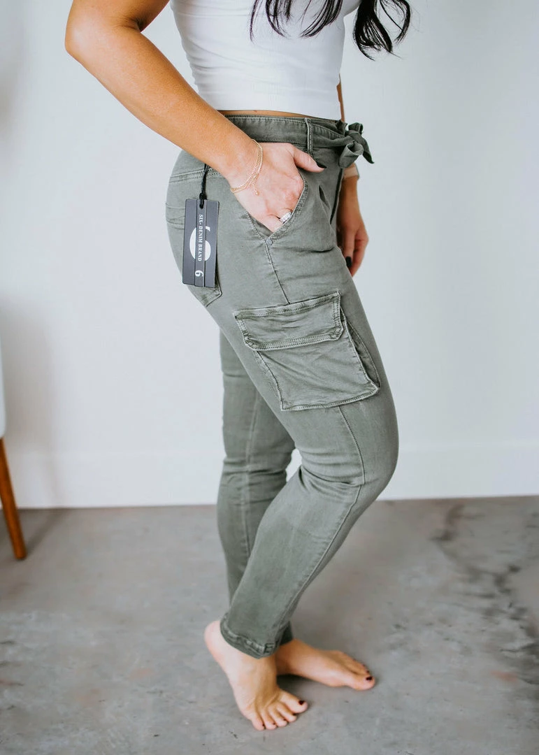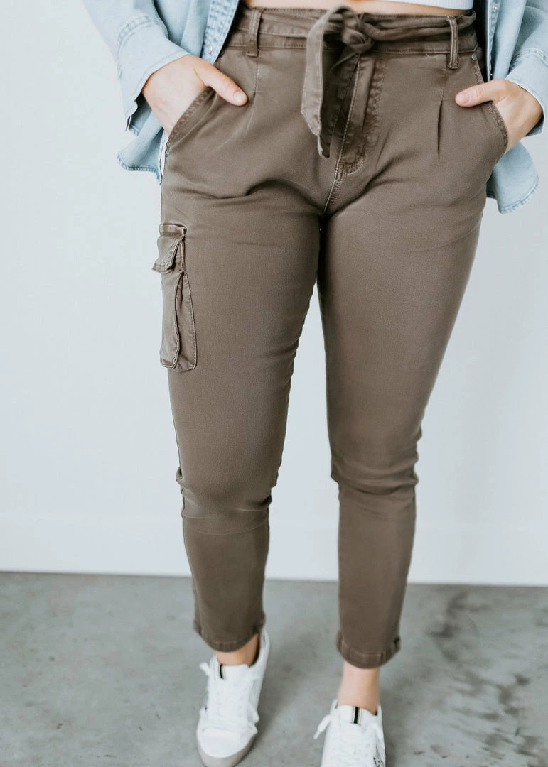 Be ready for any adventure in these flattering women’s slim-fit cargo pants. Styled with one cargo pocket and stretch twill, these casual-chic pants feature a high waist cut, pleats, back pockets, and front slant pockets. Designed with a zip fly, button closure, and sash tie to create a custom fit. Pair with sneakers and a graphic tee for a laid-back look. Laurie is wearing a small. Kaylor is wearing a large.