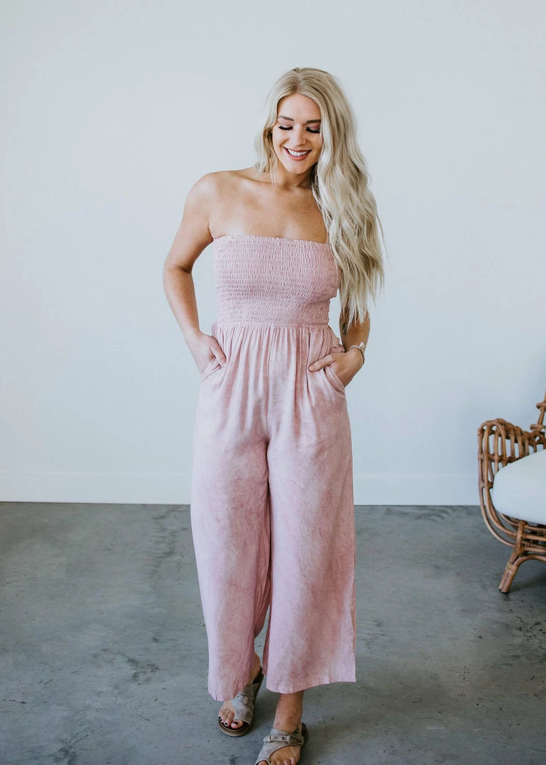 From work to play and everything in between, Summer Feels Jumpsuit is always a great choice! Stretchy woven fabric creates this jumpsuit with a sleeveless silhouette and smocked top. The relaxed bodice features a retro-inspired look with a washed look, side pockets, complete with a wide leg pant. Kaylor is wearing a medium.