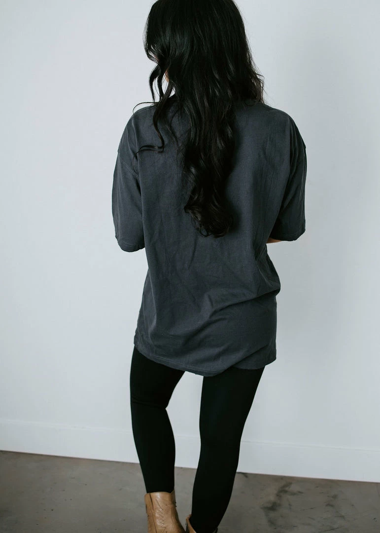 This perfectly oversized tee features subtle distressing at the neck, cuffs, and hem for a lived-in look. Styled with a crew neck, short sleeves, and a relaxed silhouette. Features the phrase, “FREE BIRD,” framed by outstretched wings. Laurie is wearing a S-M and Loghin is wearing a 1XL.